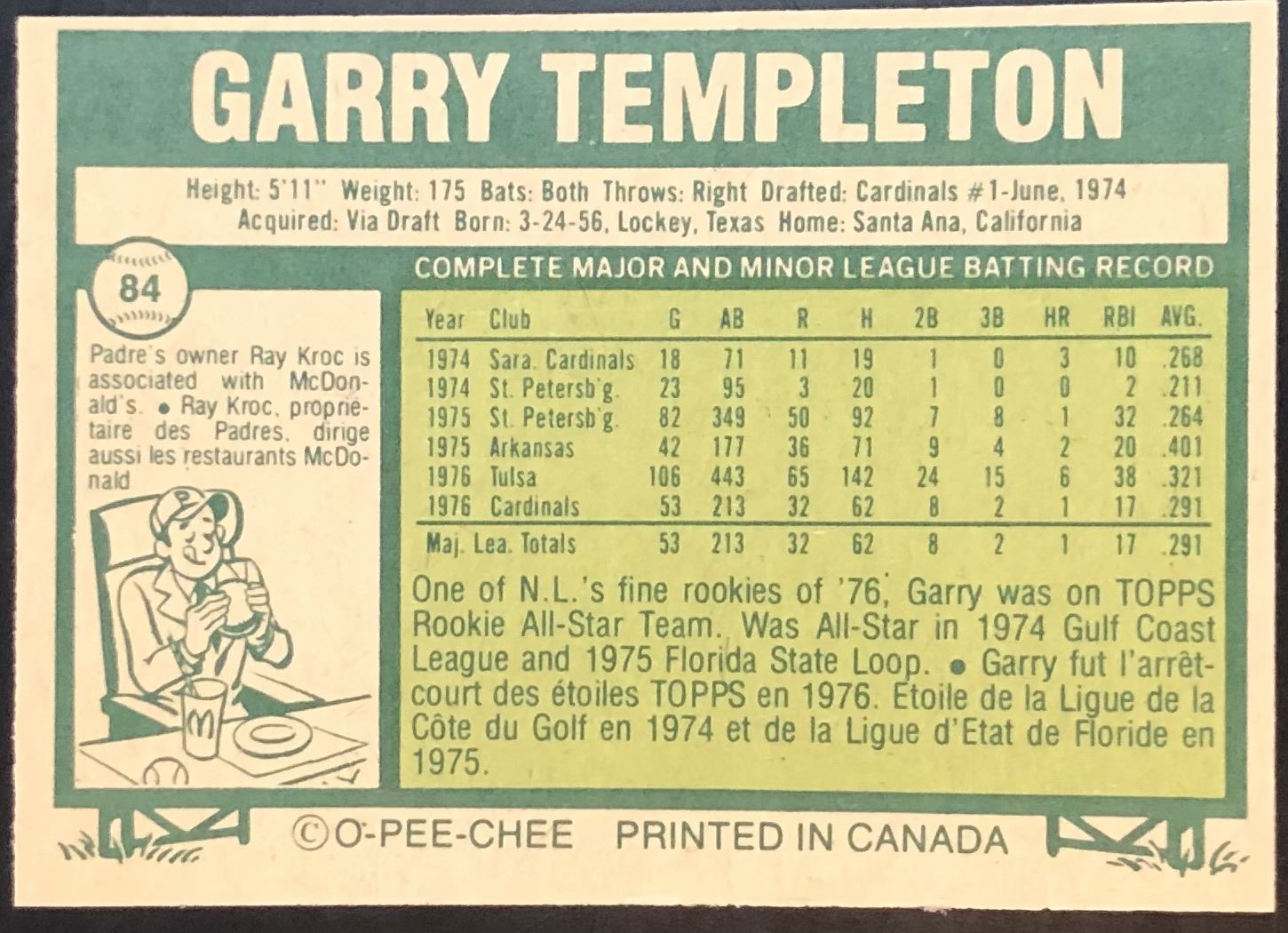 Card #84 MLB, baseball, vintage, OPC, rookie