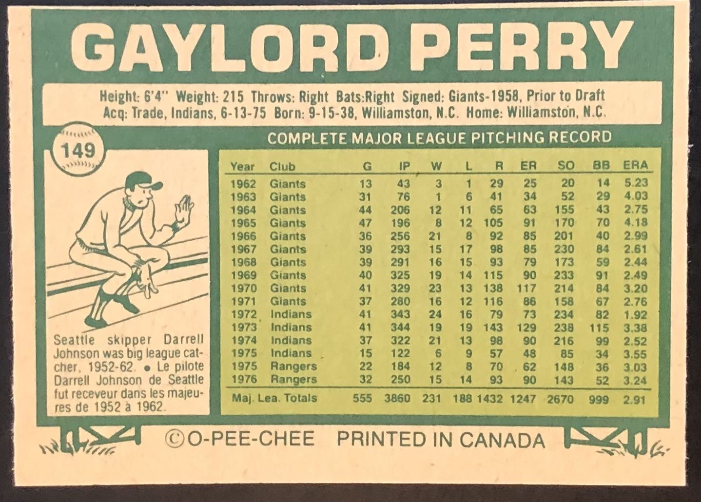 Card #149 MLB, baseball, vintage, OPC, hall of fame
