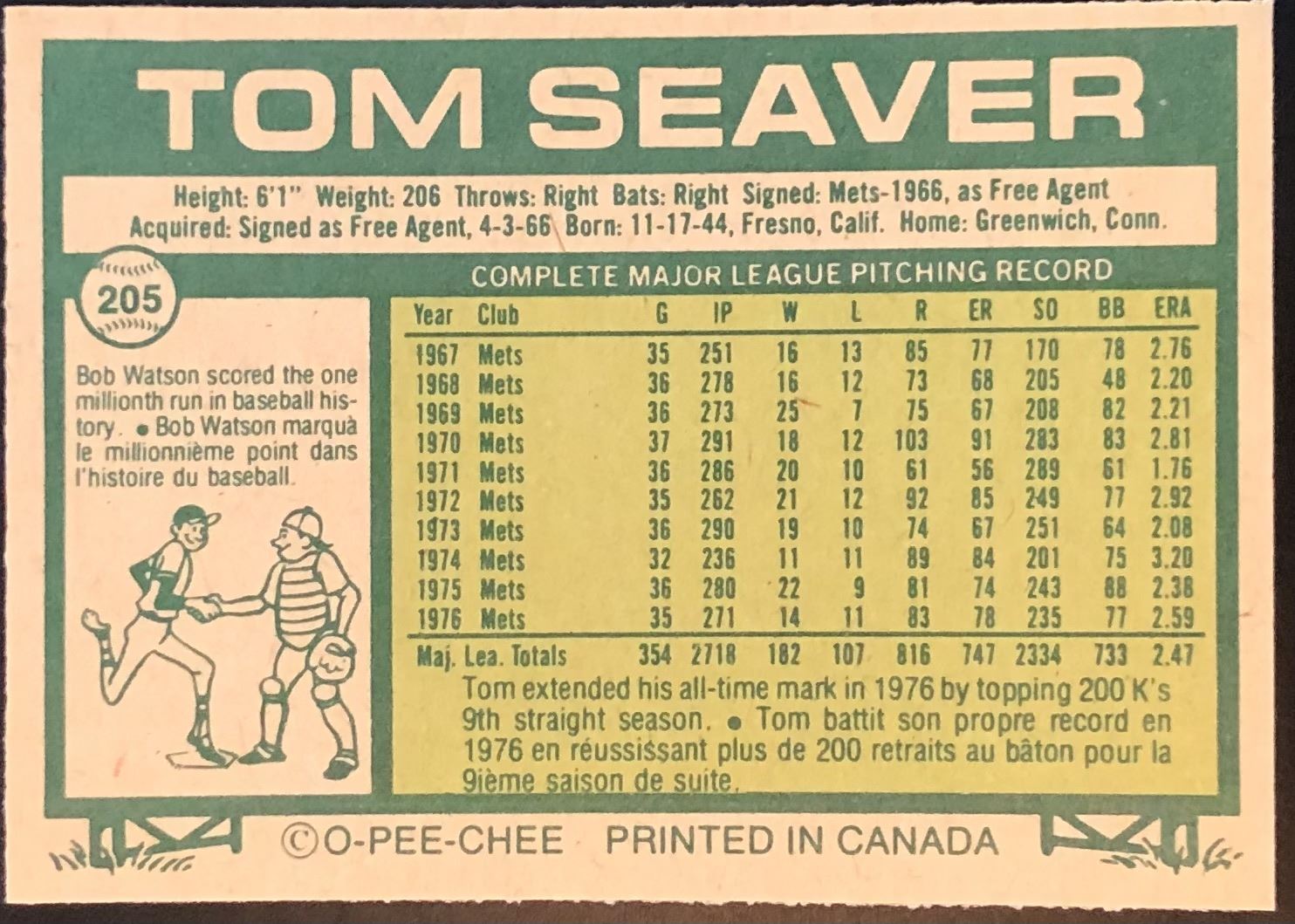 Card #205 MLB, baseball, vintage, OPC, hall of fame