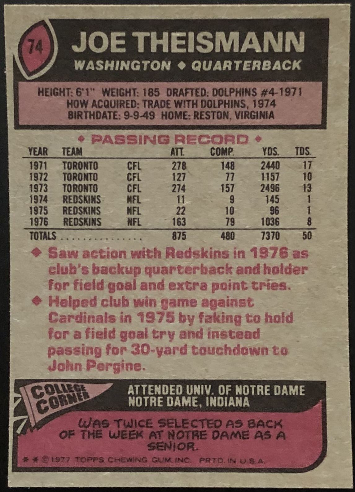 Card #74 NFL, football, vintage, hall of fame