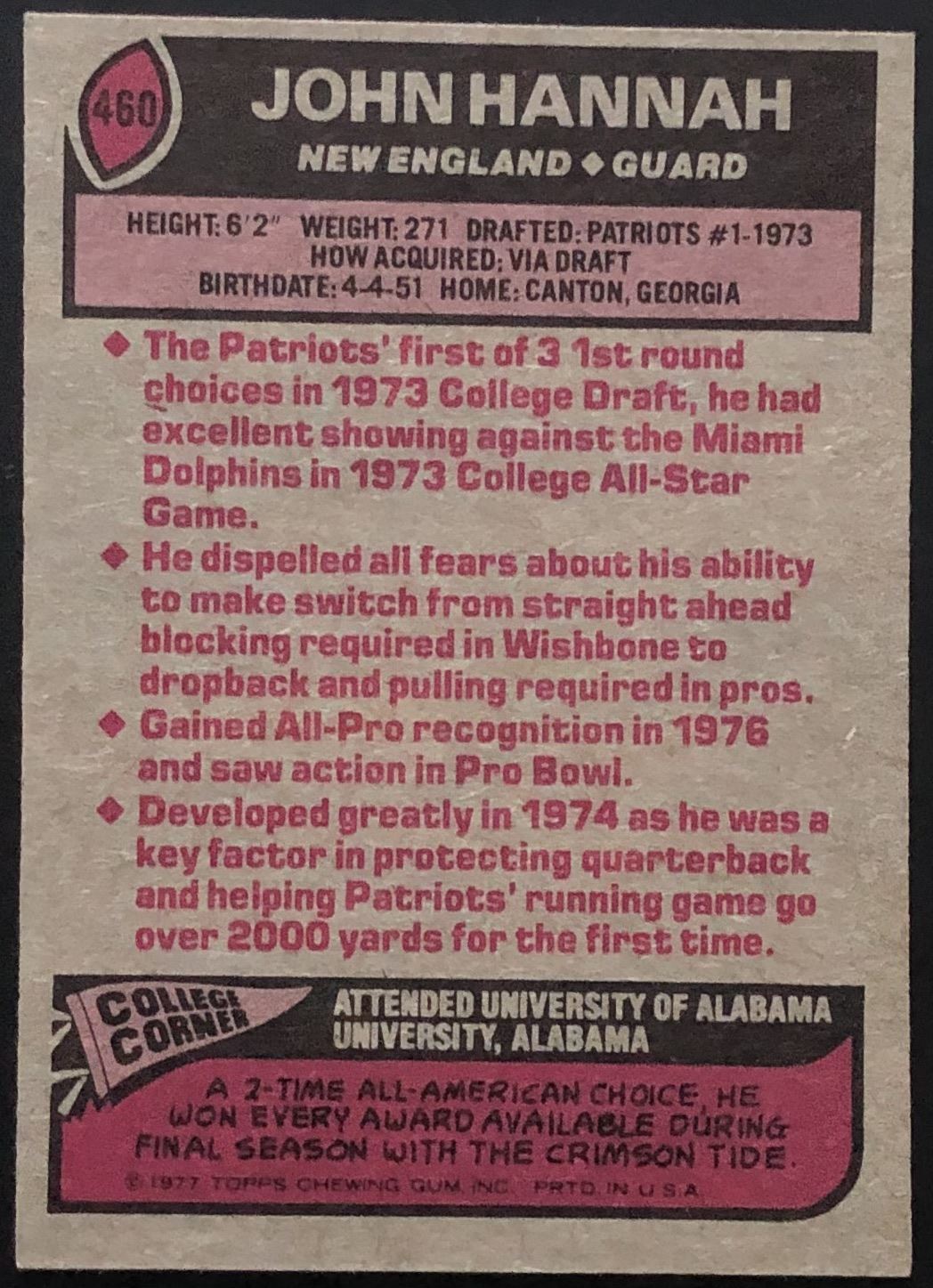 Card #460 NFL, football, vintage, hall of fame