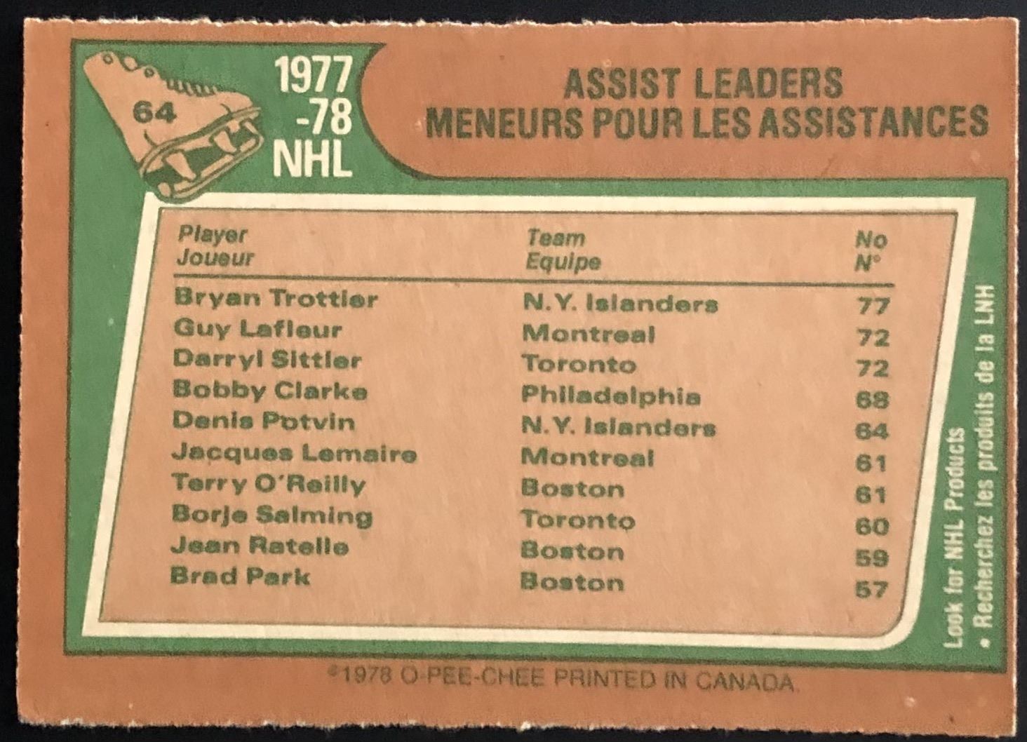Card #64 NHL, hockey, OPC, vintage, hall of fame, autograph