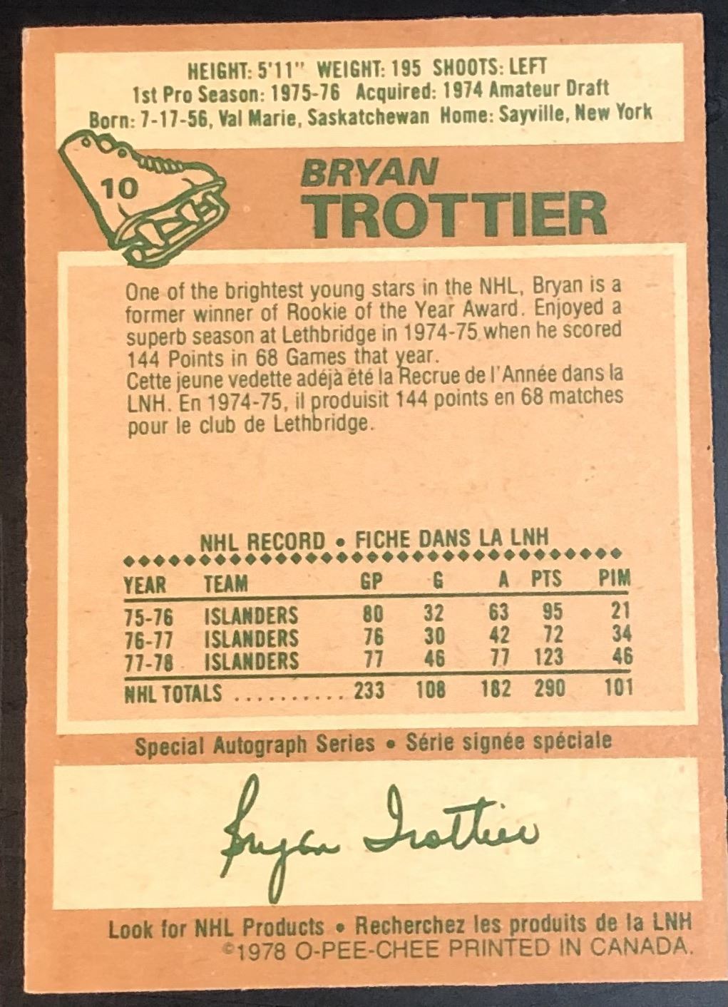 Card #10 hockey, OPC, vintage, hall of fame