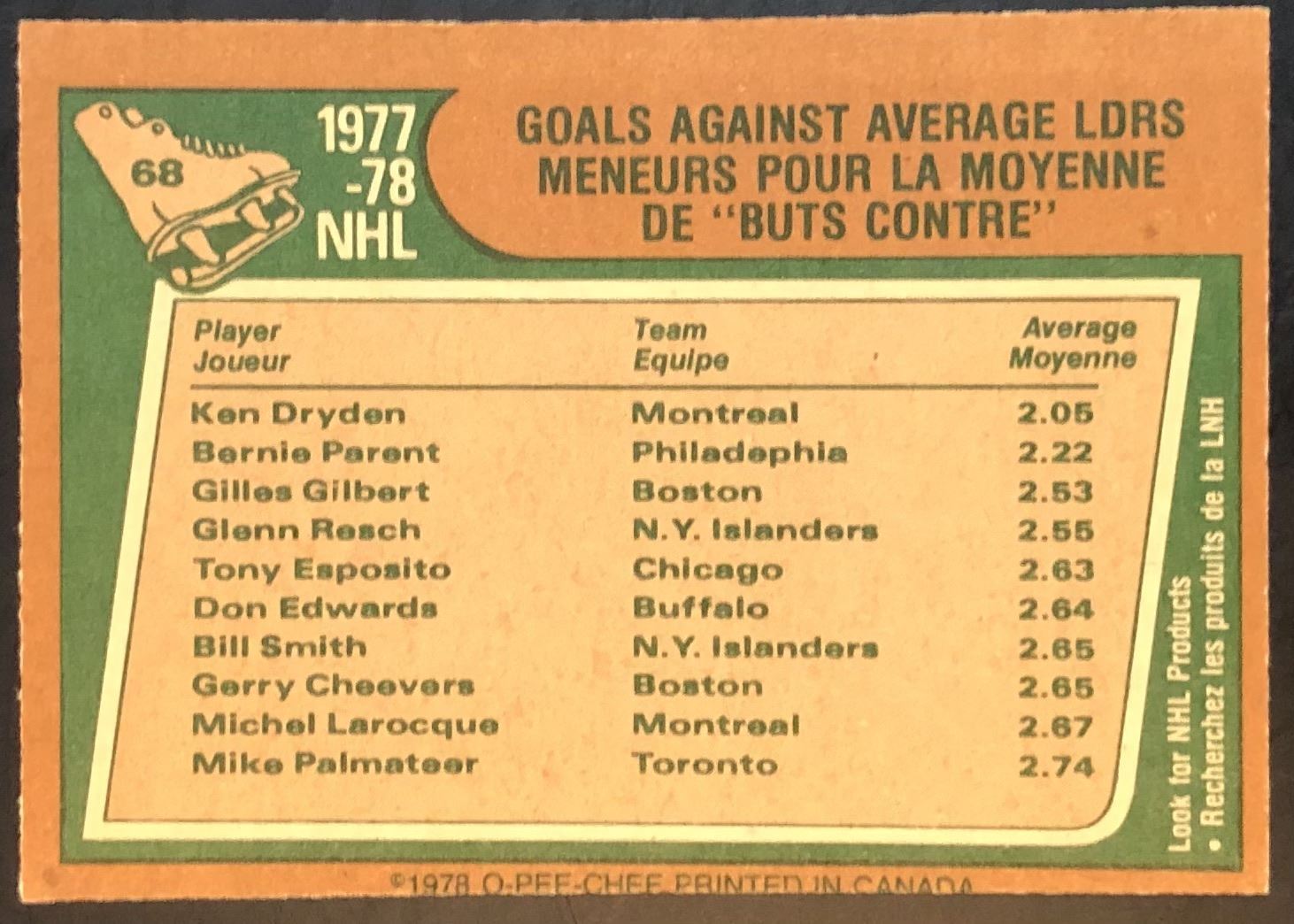 Card #68 NHL, hockey, OPC, vintage, hall of fame