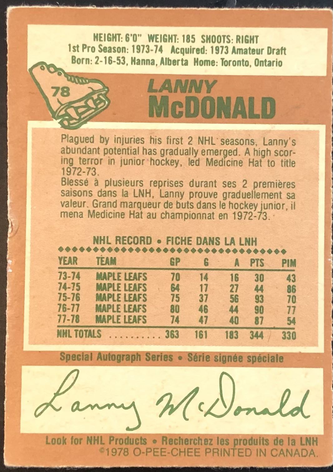 Card #78 NHL, hockey, vintage, hall of fame, OPC