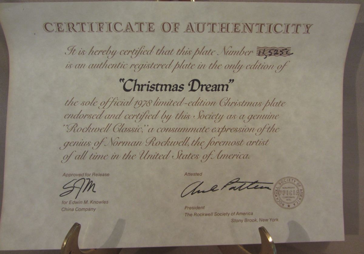 8 1/2" plate, dated 1978 'Christmas Dream' this plate is a limited-edition Christmas plate is endorsed and certified as a genuine 'Rockwell Classic'. The plate number is 11525C, Bradex Number: 84-70-1.5 and made available by Edwin M. Knowles Co. It comes in the original box, with paperwork and COA. (Please see images for details)