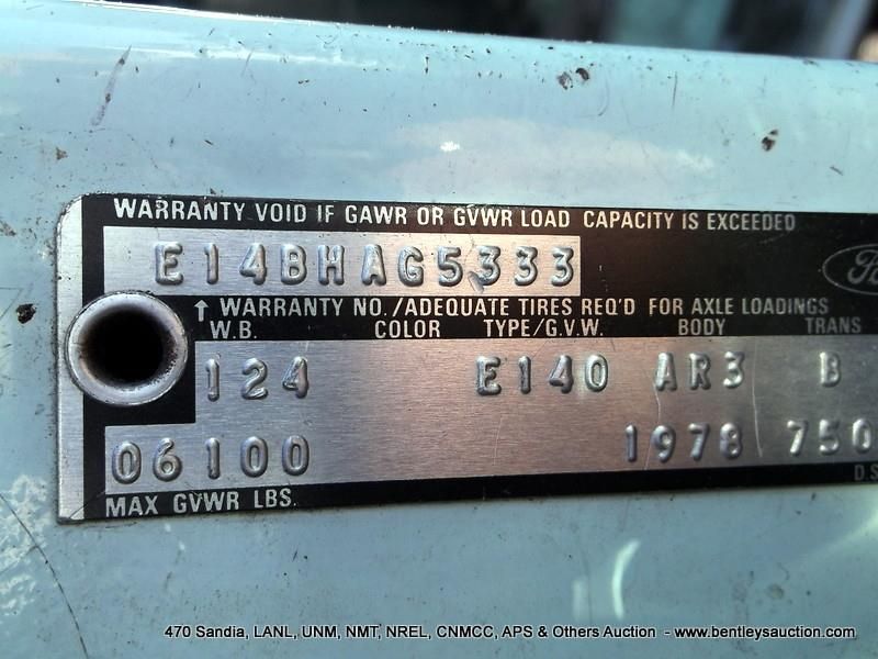 1978 FORD ECONOLINE 1/2 TON VAN ~ 109,259 MILES VIN: E14BHAG5333, GASOLINE, 6 CYLINDERS 2 KEYS TITLE