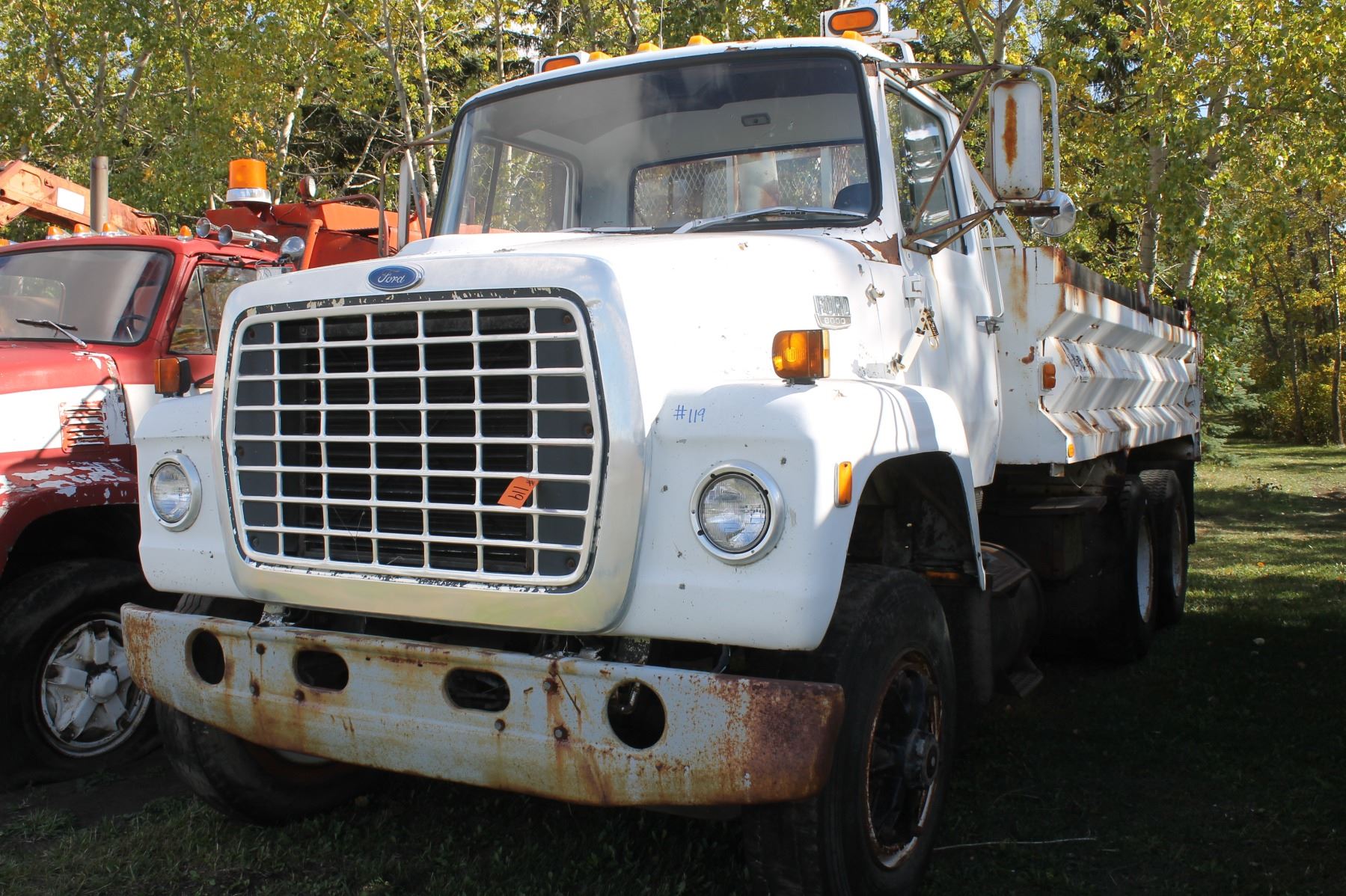 1978 Ford Louisville 8000, 3208 Cat, Rebuilt Auto Trans, 11R 22.5 Tires, 34,000 rears, 15' Box & Telescopic Hoist, c/w Spare Parts in Cab, #80DVDJ9549, Rebuilt Auto, Runs