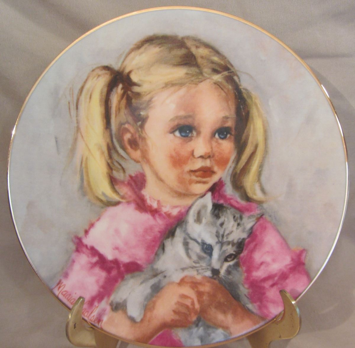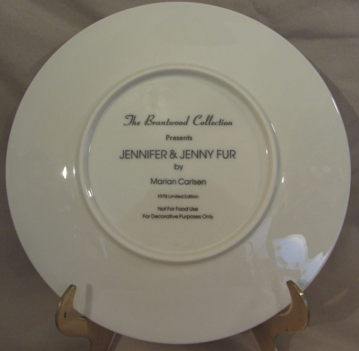 8 1/4" plate, dated 1978 'Jennifer & Jenny Fur' by Marian Carlsen. The plate is rimmed in gold and is offered by The Brantwood Collection. Does not come in the original box and there is no paperwork. (Please see images for details)