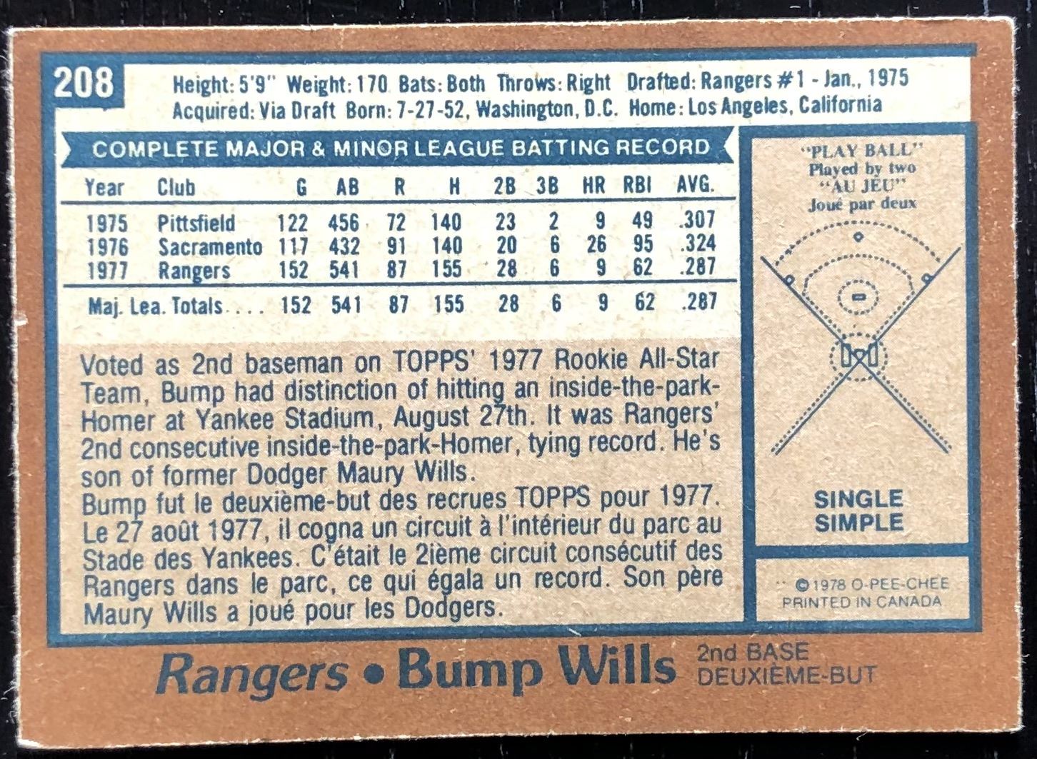 Card #208 MLB, baseball, vintage, OPC, rookie