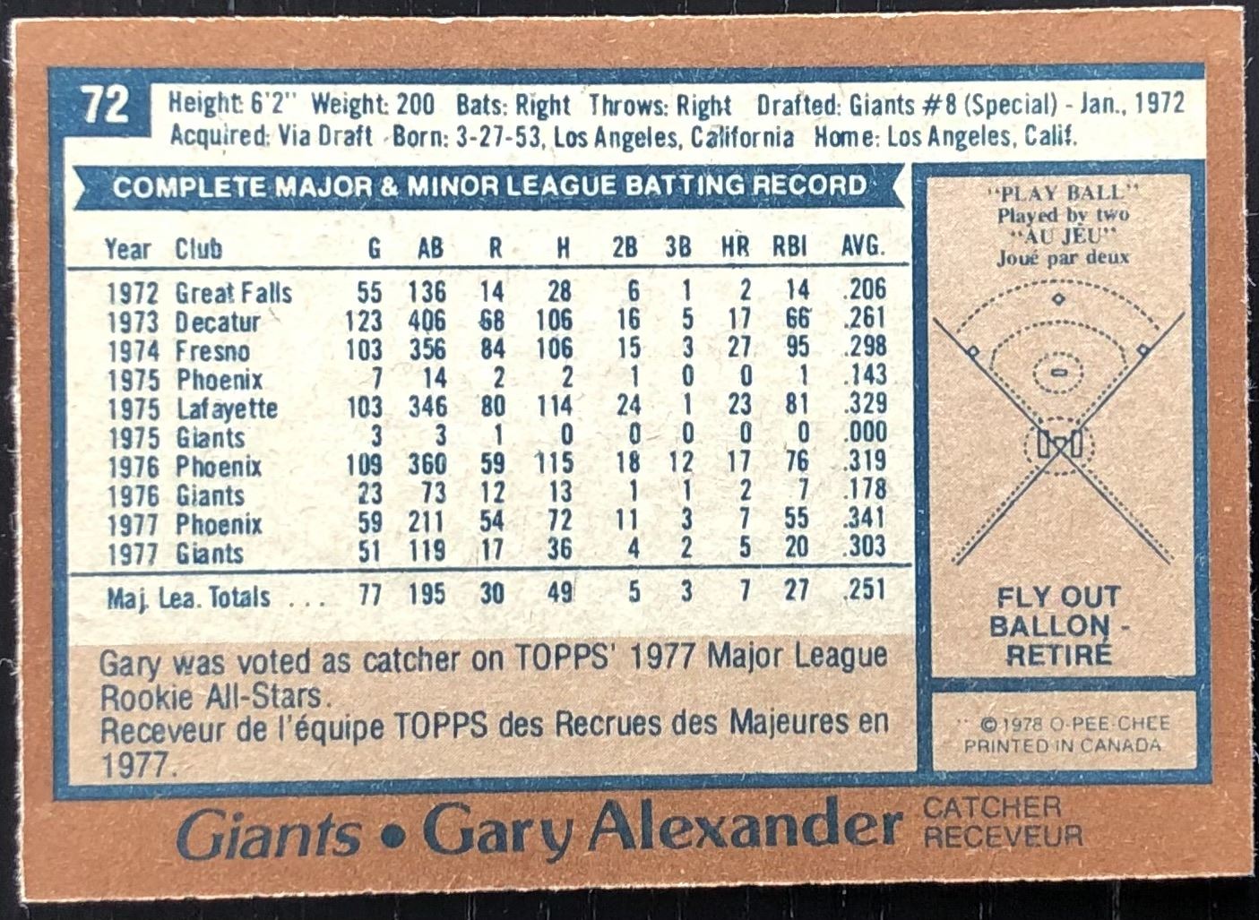 Card #72 MLB, baseball, vintage, OPC, rookie