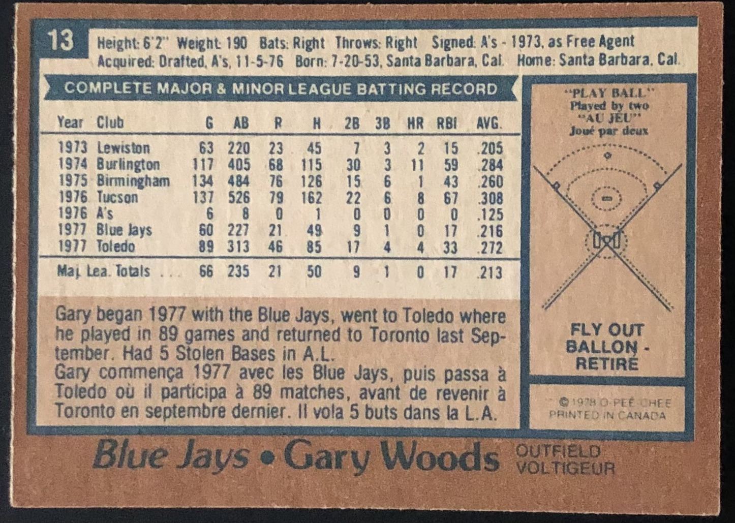 Card #13 OPC, baseball, MLB, vintage, rookie