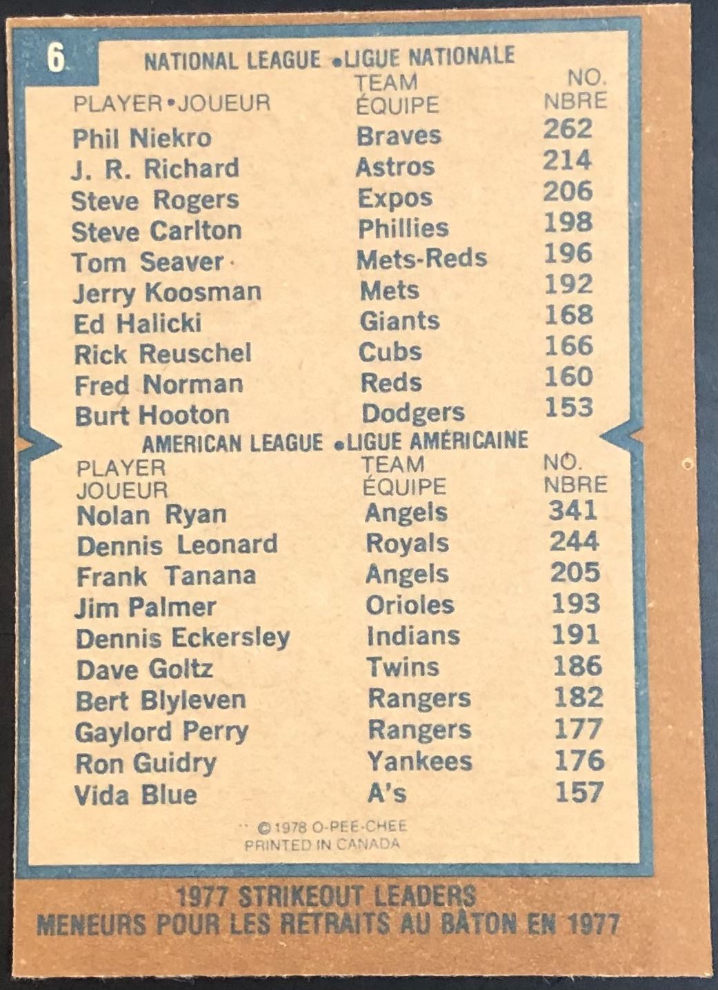 Card #6 MLB, baseball, vintage, OPC, hall of fame