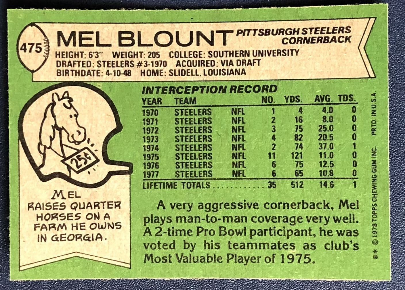 Card #475 NFL, football, vintage, hall of fame
