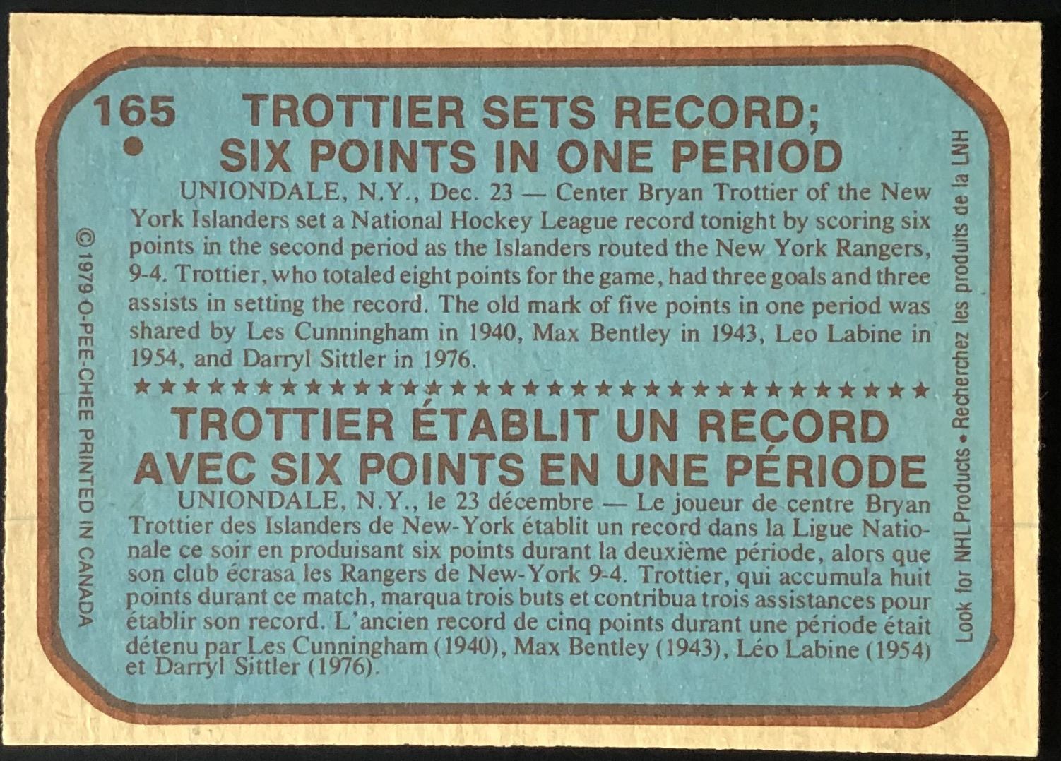 Card #165 OPC, vintage, NHL, hockey, hall of fame