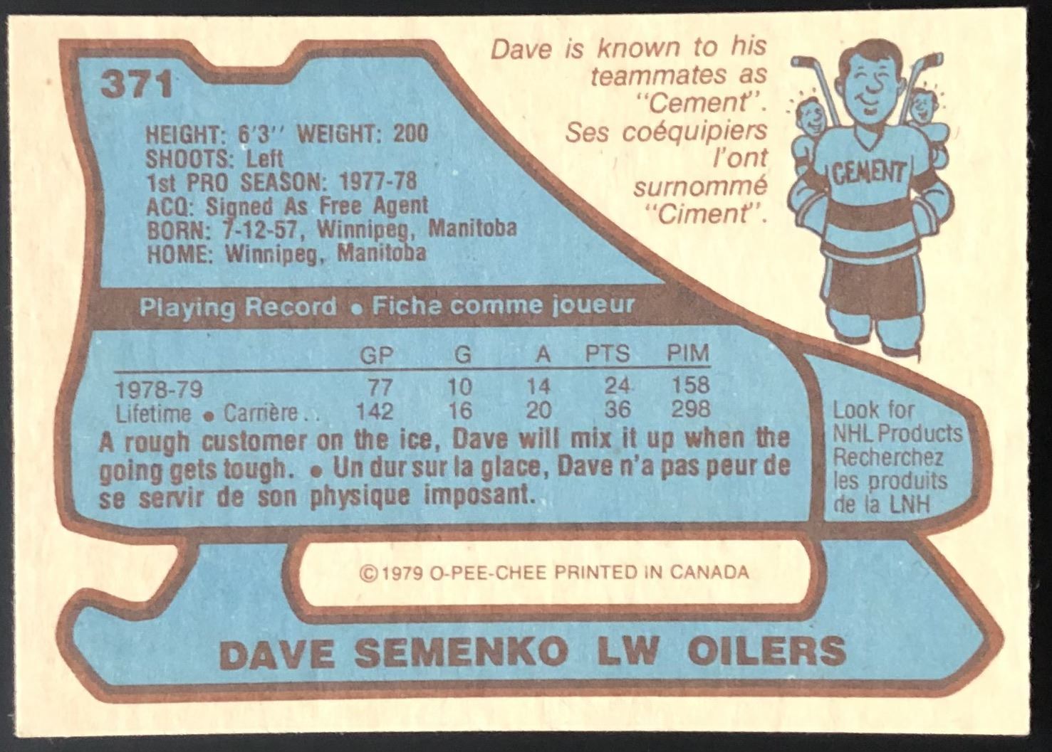 Card #371 OPC, NHL, hockey, vintage, rookie