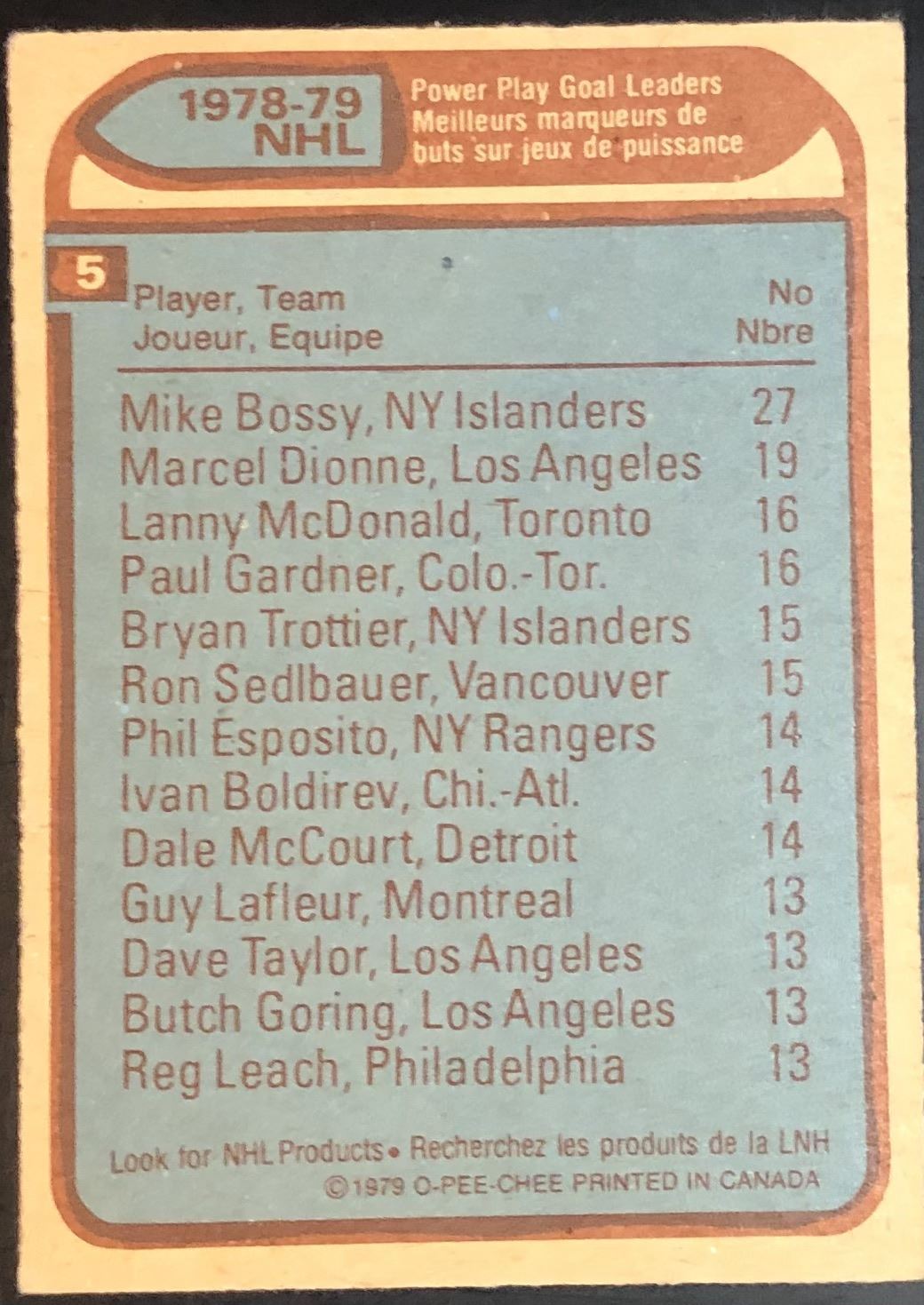 Card #5 hockey, OPC, vintage, hall of fame