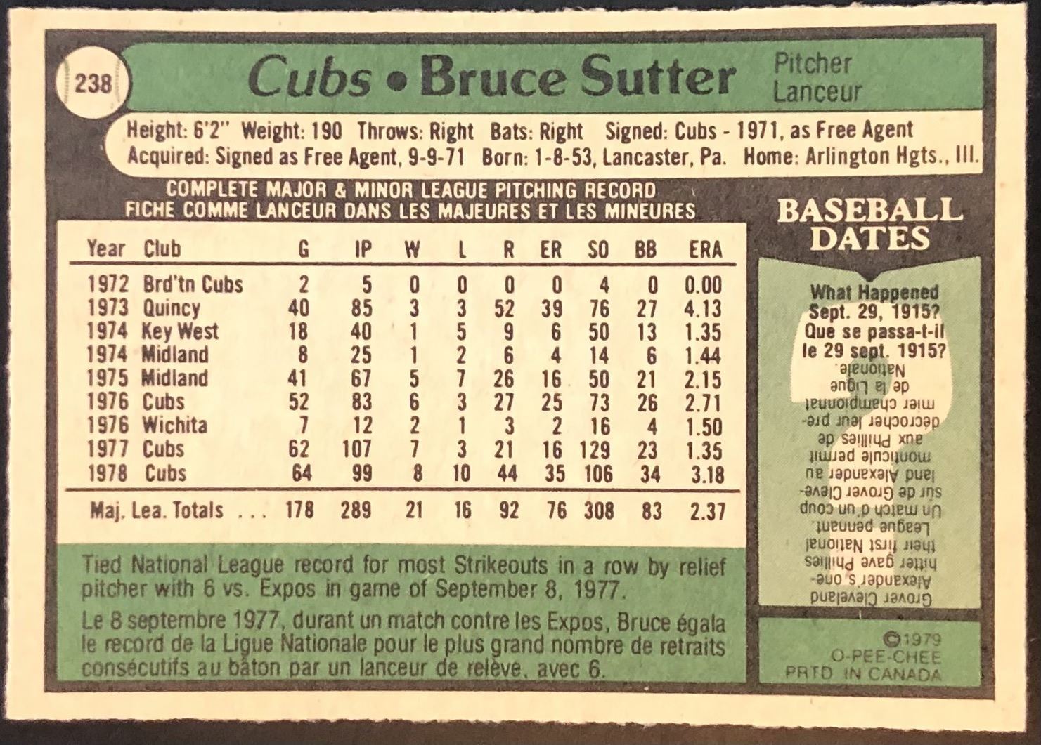 Card #238 MLB, baseball, vintage, OPC, hall of fame