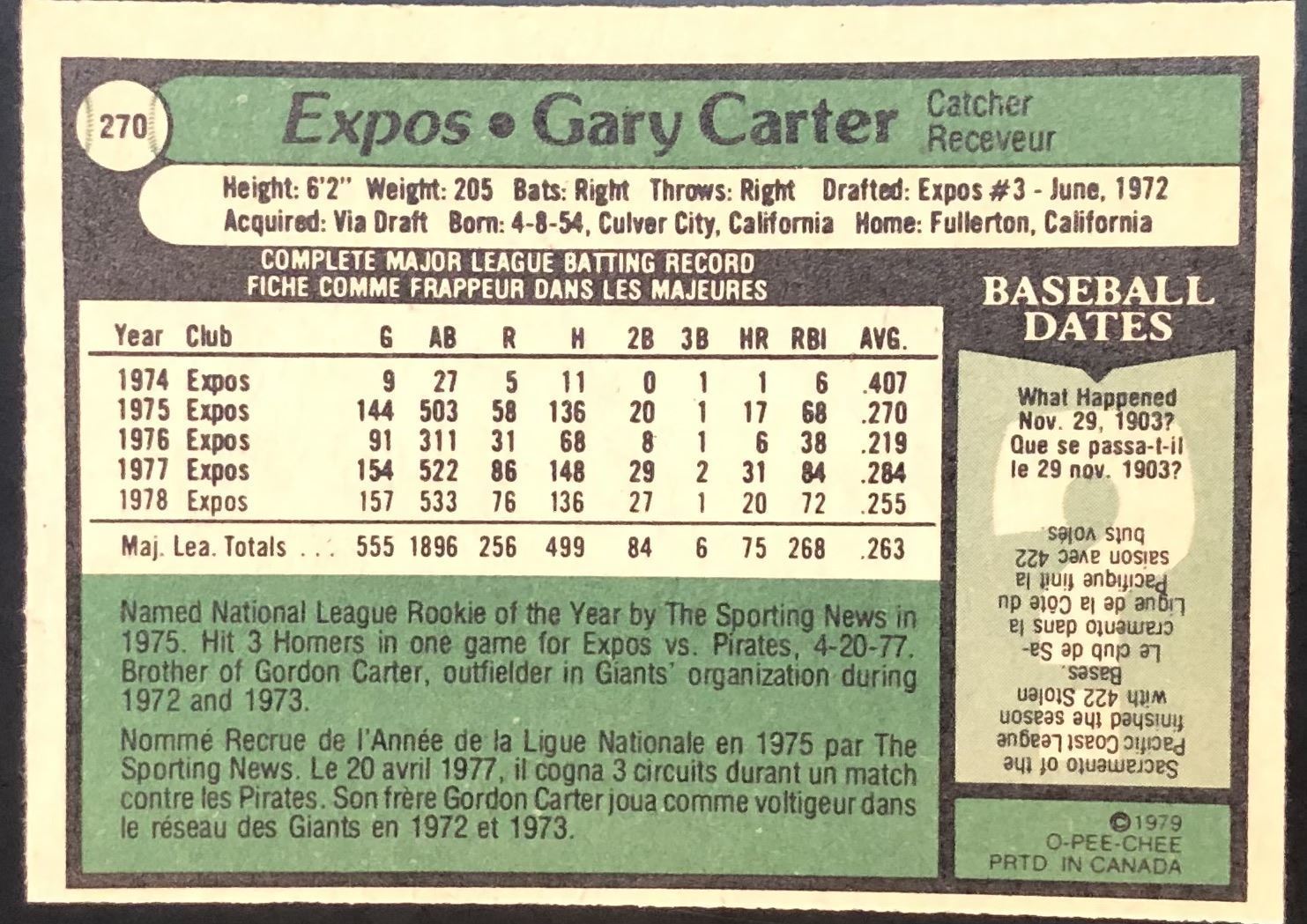 Card #270 MLB, baseball, vintage, OPC, hall of fame