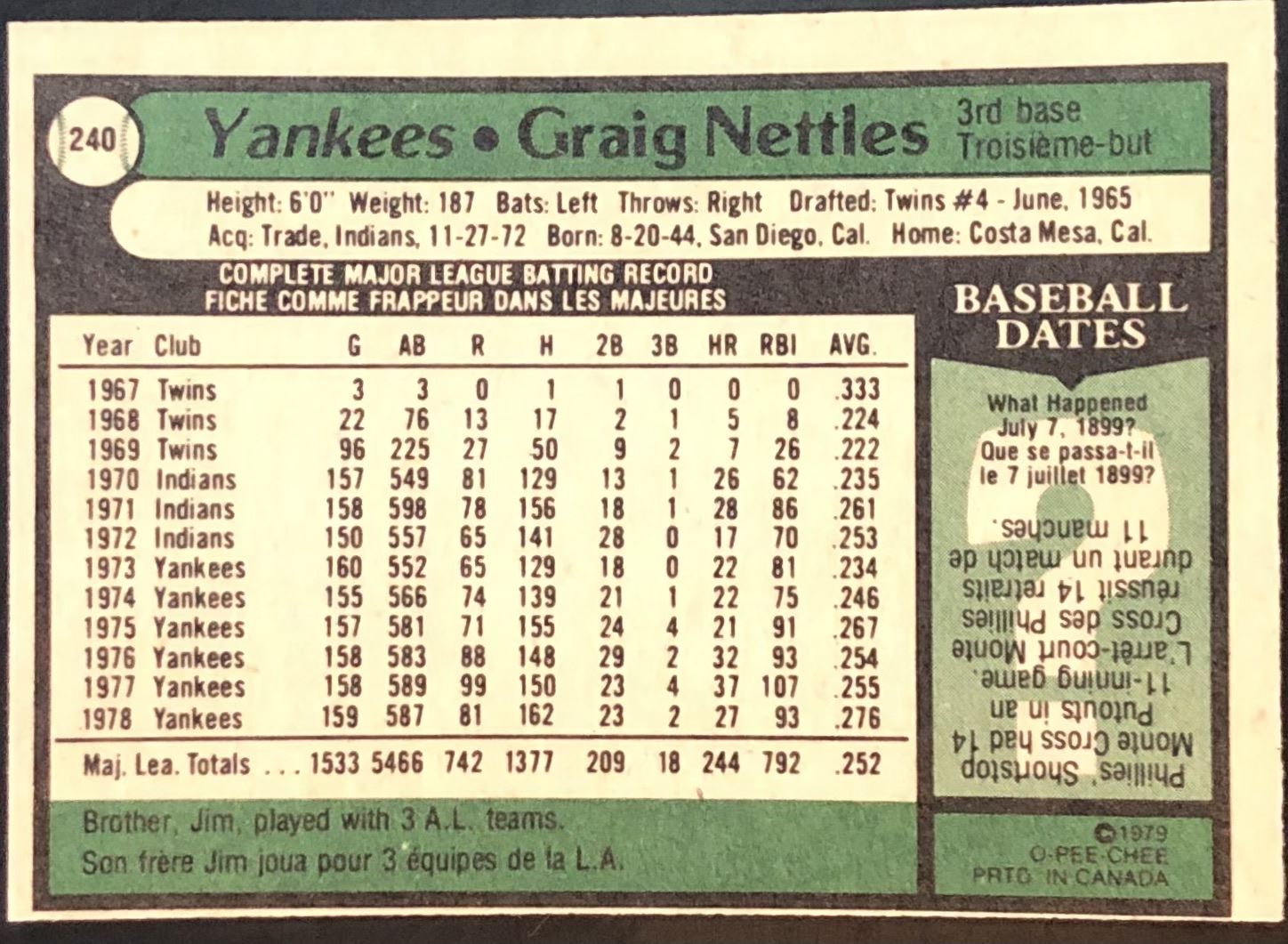 Card #240 MLB, baseball, vintage, OPC