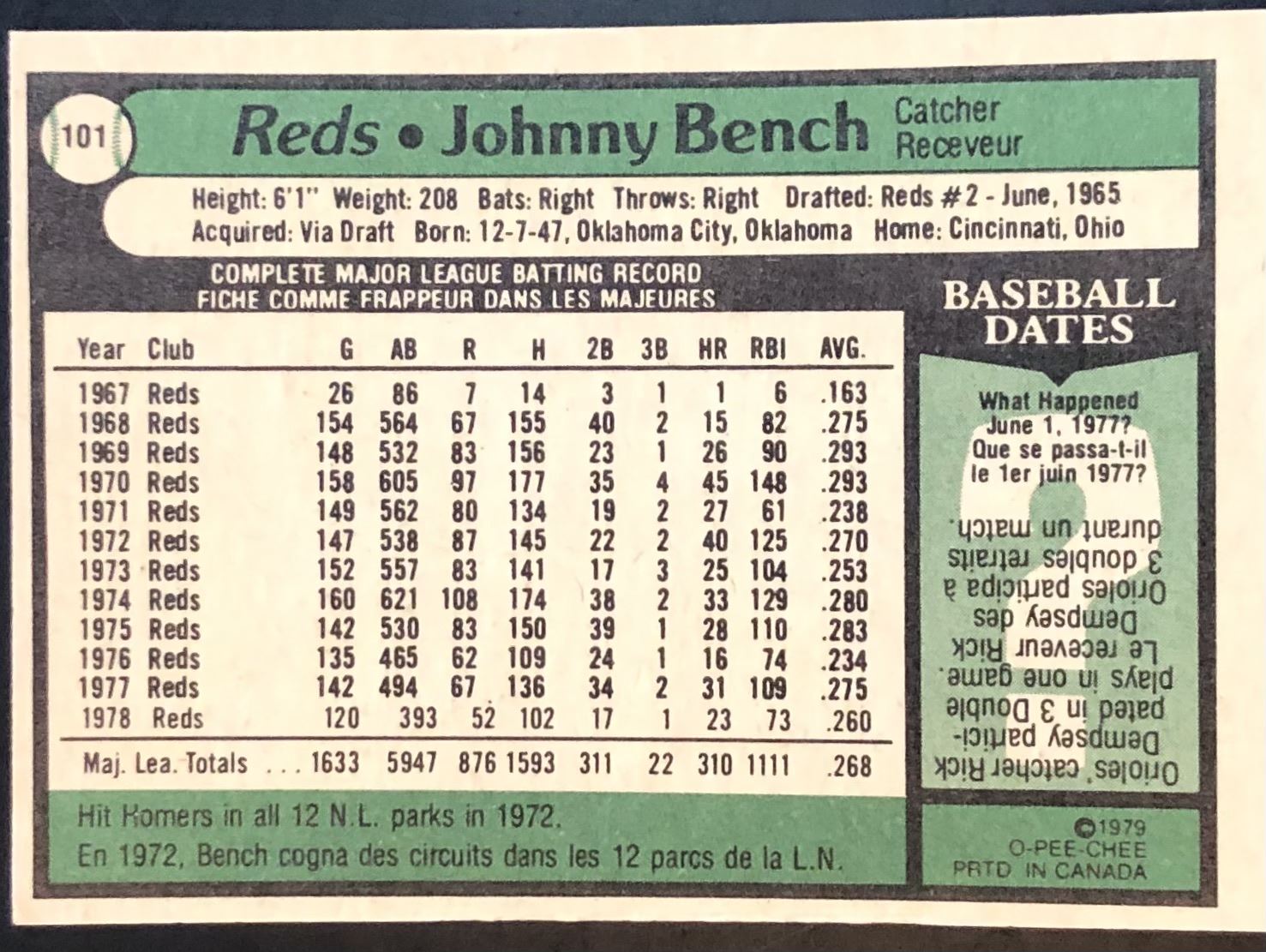 Card #101 MLB, baseball, vintage, OPC, hall of fame