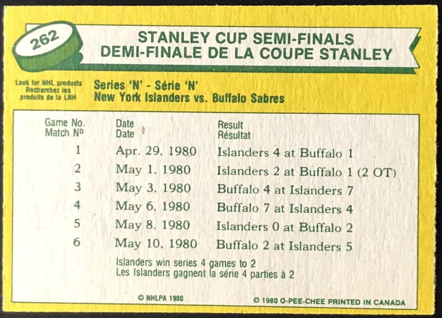 Card #262 NHL, hockey, vintage, OPC, hall of fame