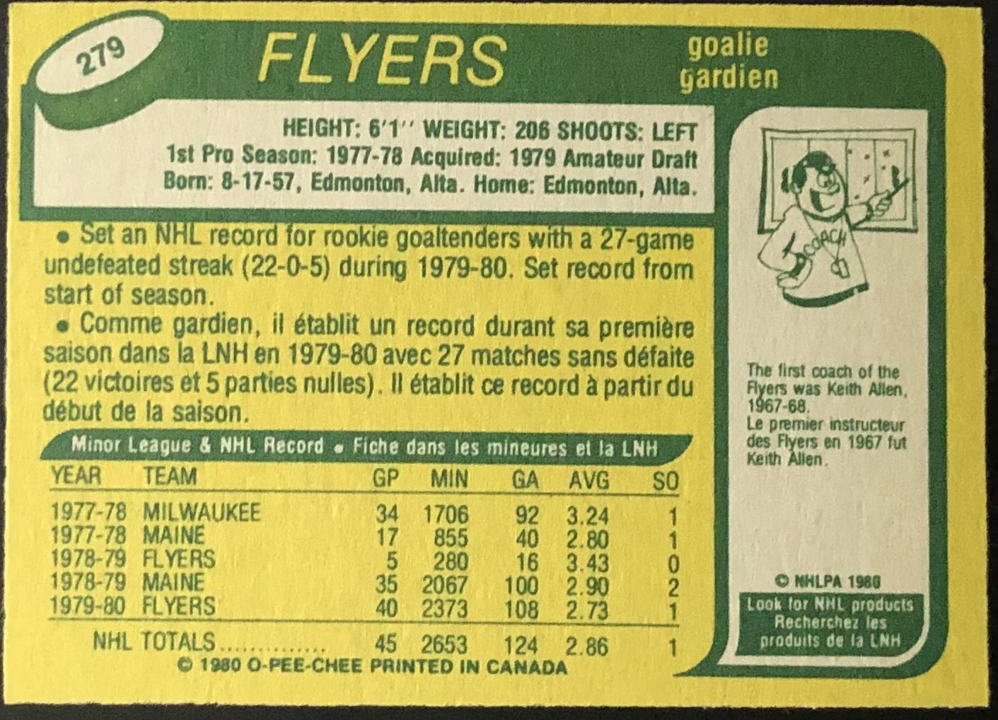 Card #279 NHL, hockey, vintage, OPC, rookie