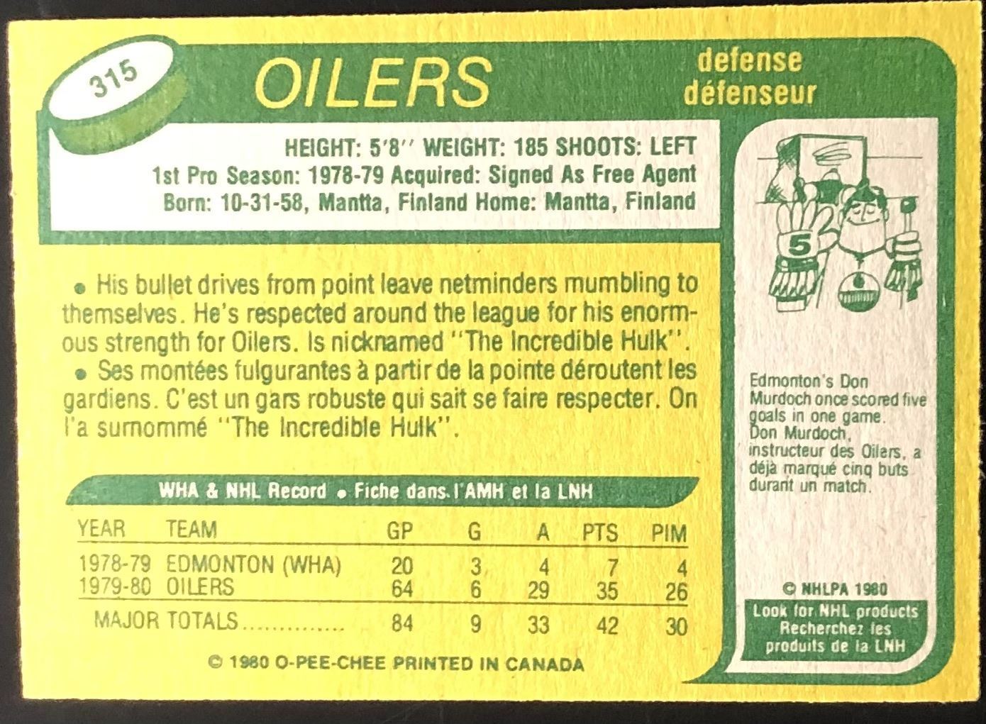 Card #315 NHL, hockey, vintage, OPC, rookie