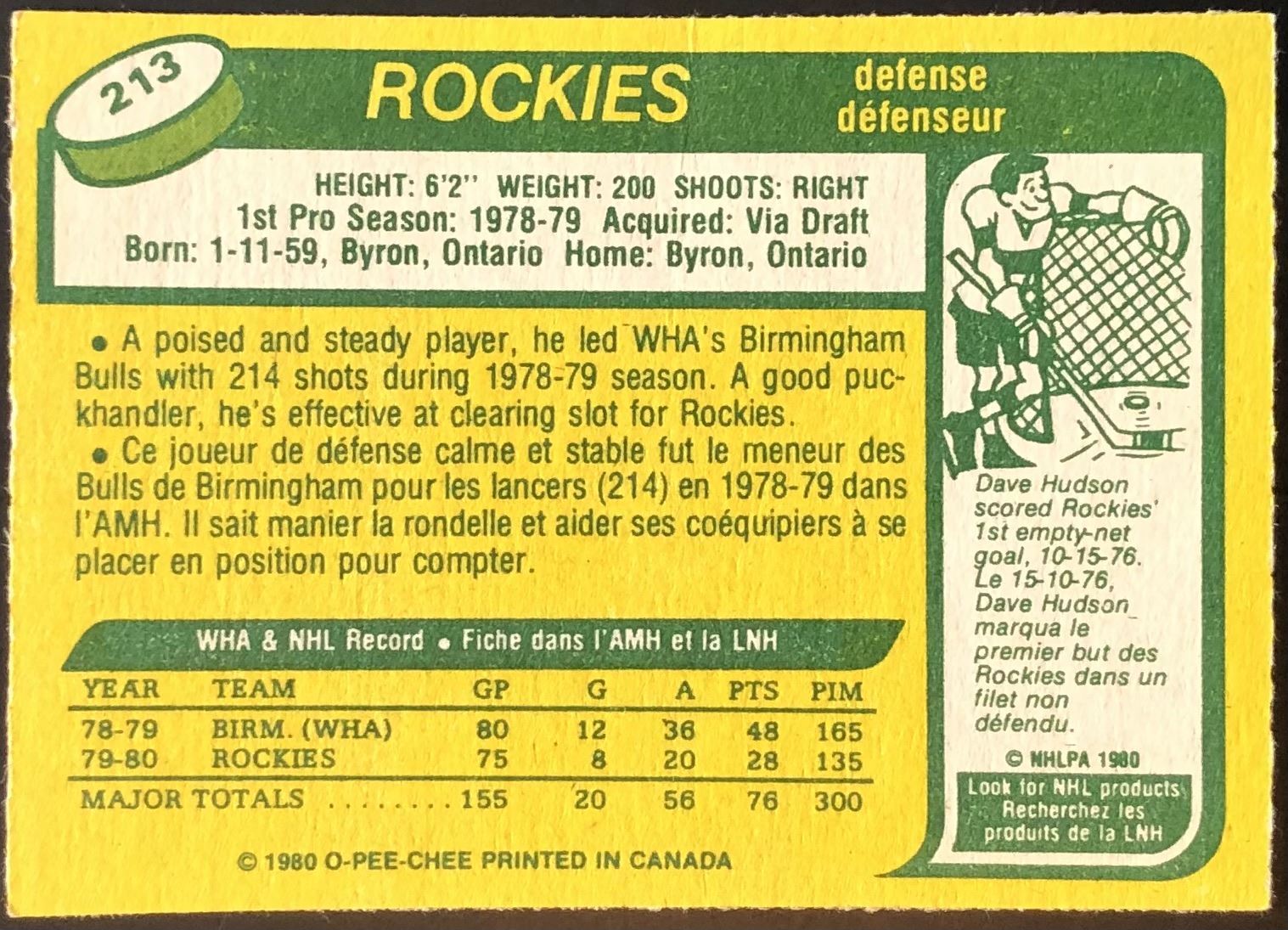 Card #213 NHL, hockey, vintage, OPC, rookie