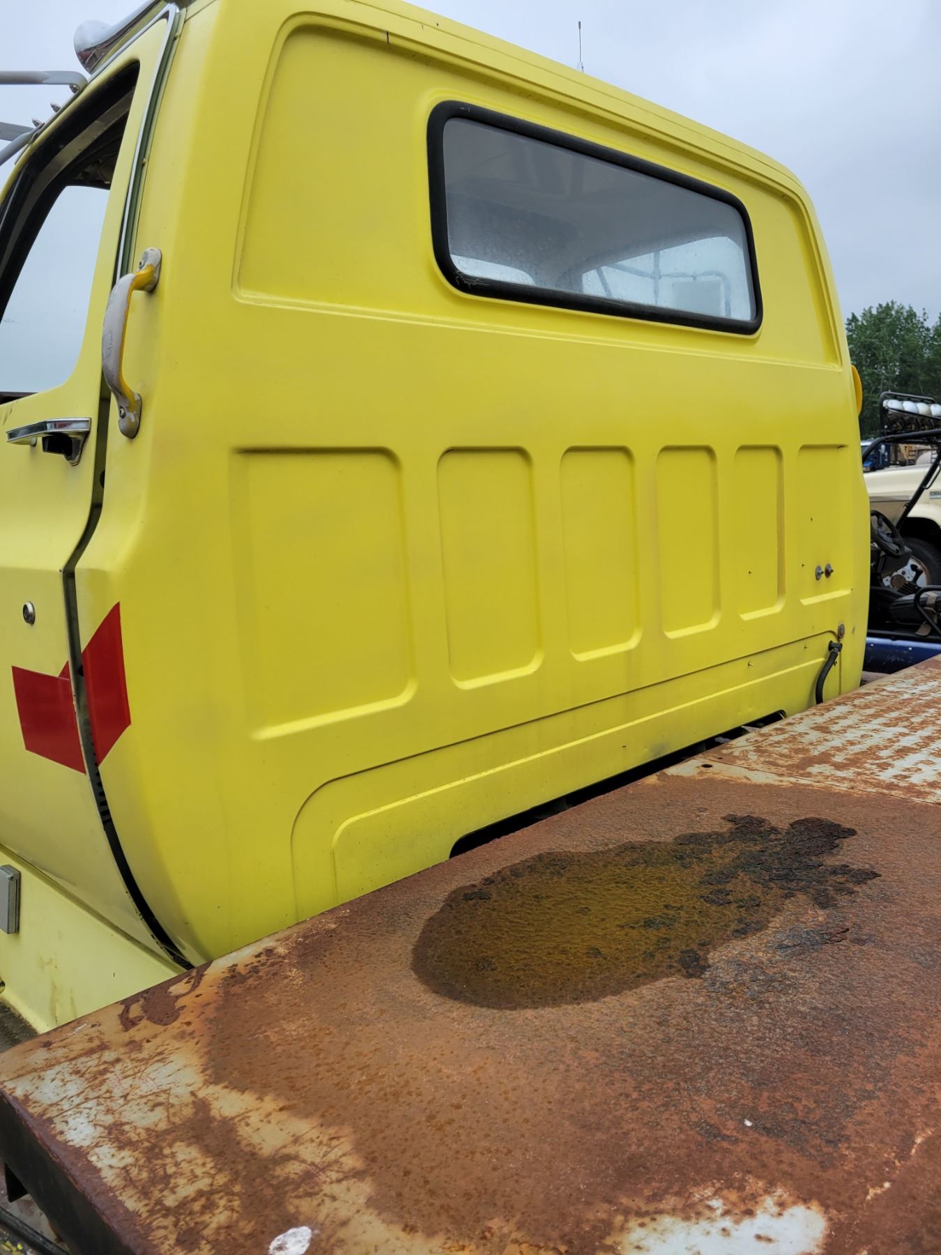 1980 GMC 7000 Single Axle Truck, Yellow, Detroit 453, diesel c/w Aliston 4 spd, On Air, 83,938 Orig. Km, 1269 hrs, 16' Deck, Frt & rear hitch, glass is V.G., 27,500 GVW. Came from Municipal Airport, V.G. Orig. Condition, As New 11Rx22.5's. SN. T17DDAV575541