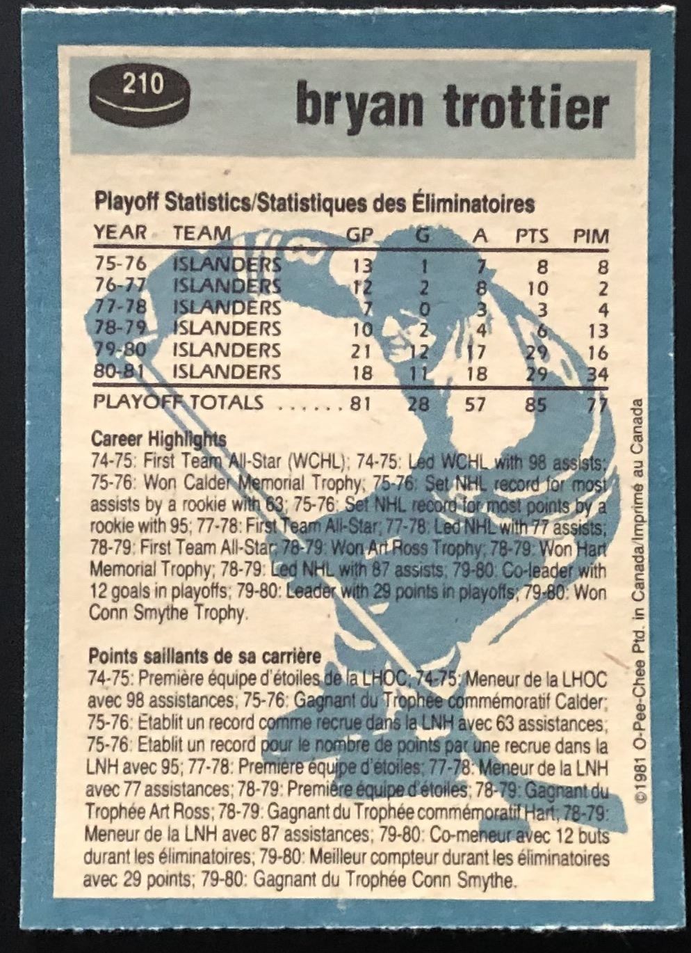 Card #210 OPC, vintage, NHL, hockey, hall of fame