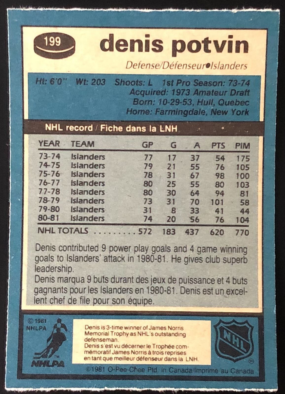 Card #199 NHL, hockey, vintage, OPC, hall of fame