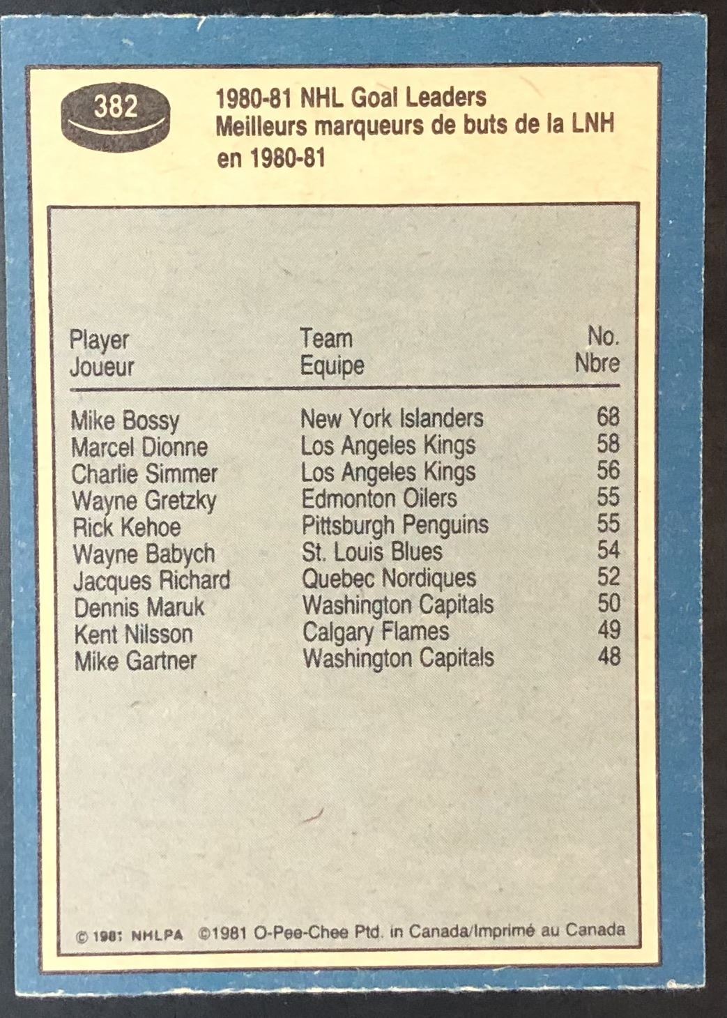 Card #382 OPC, vintage, NHL, hockey, hall of fame