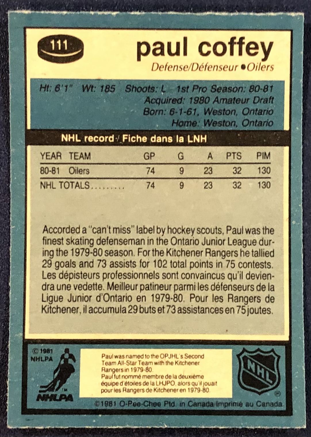 Card #111 NHL, hockey, OPC, vintage, hall of fame, rookie
