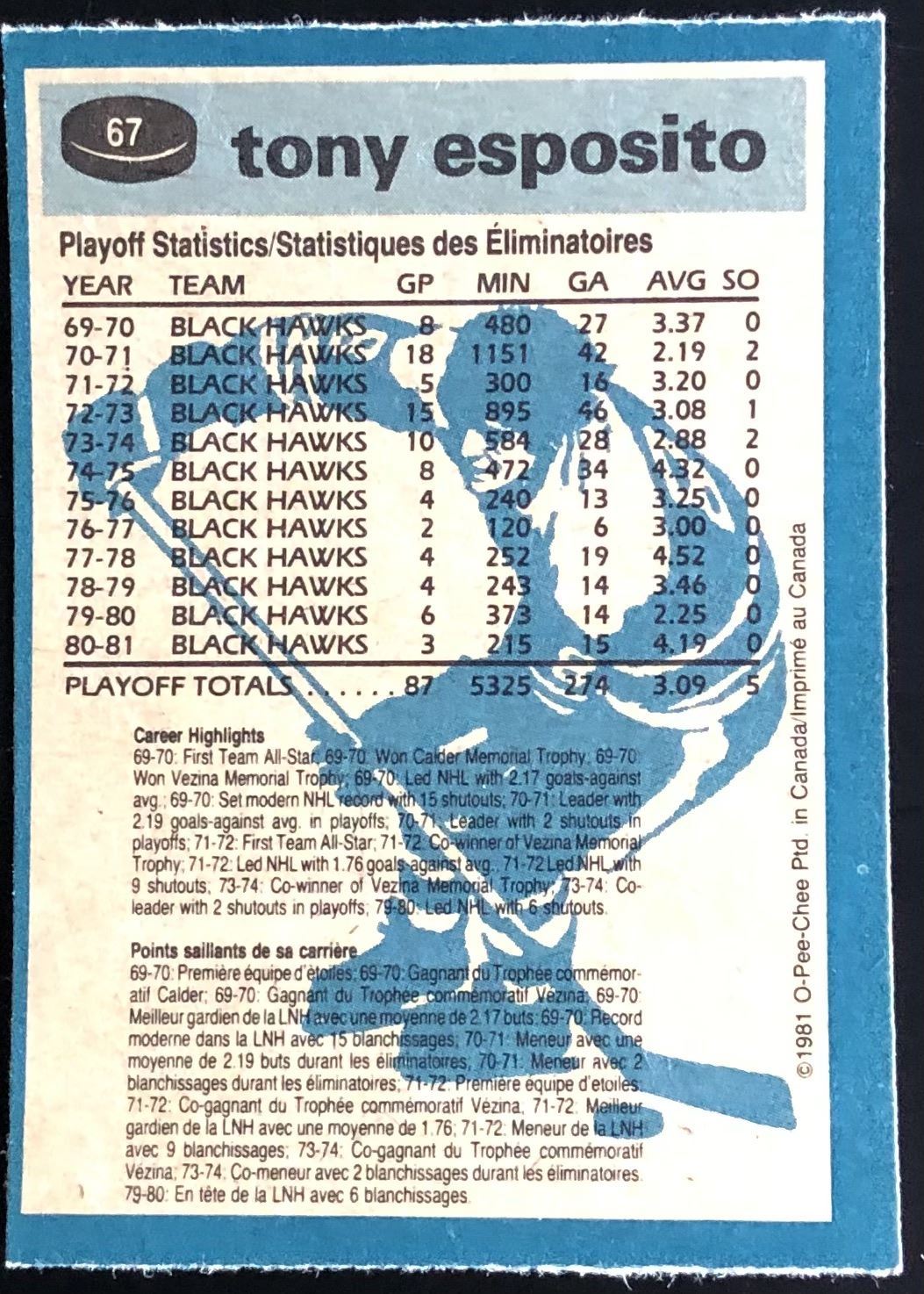 Card #67 NHL, hockey, vintage, OPC, hall of fame