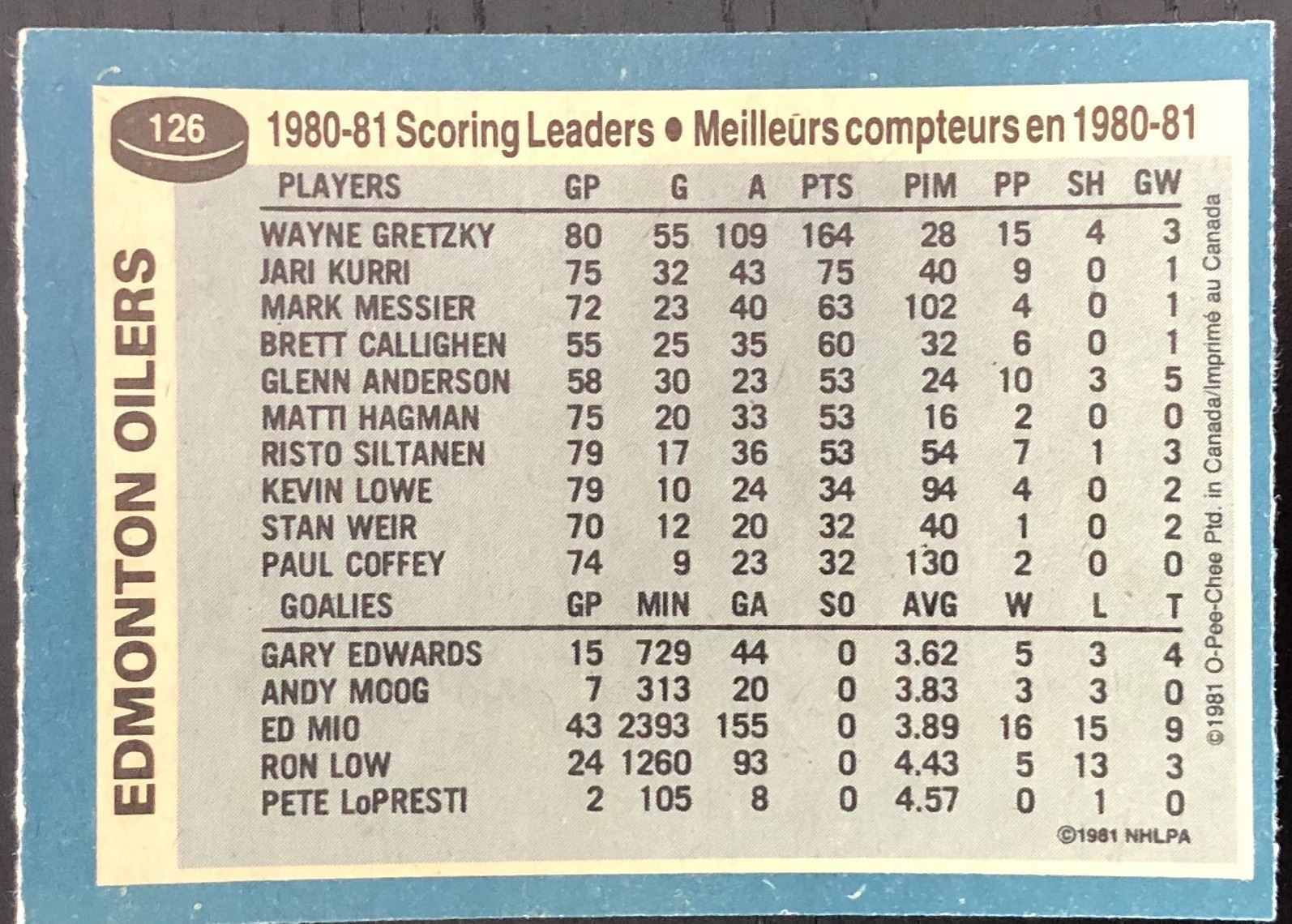 Card #126 NHL, hockey, vintage, OPC, hall of fame