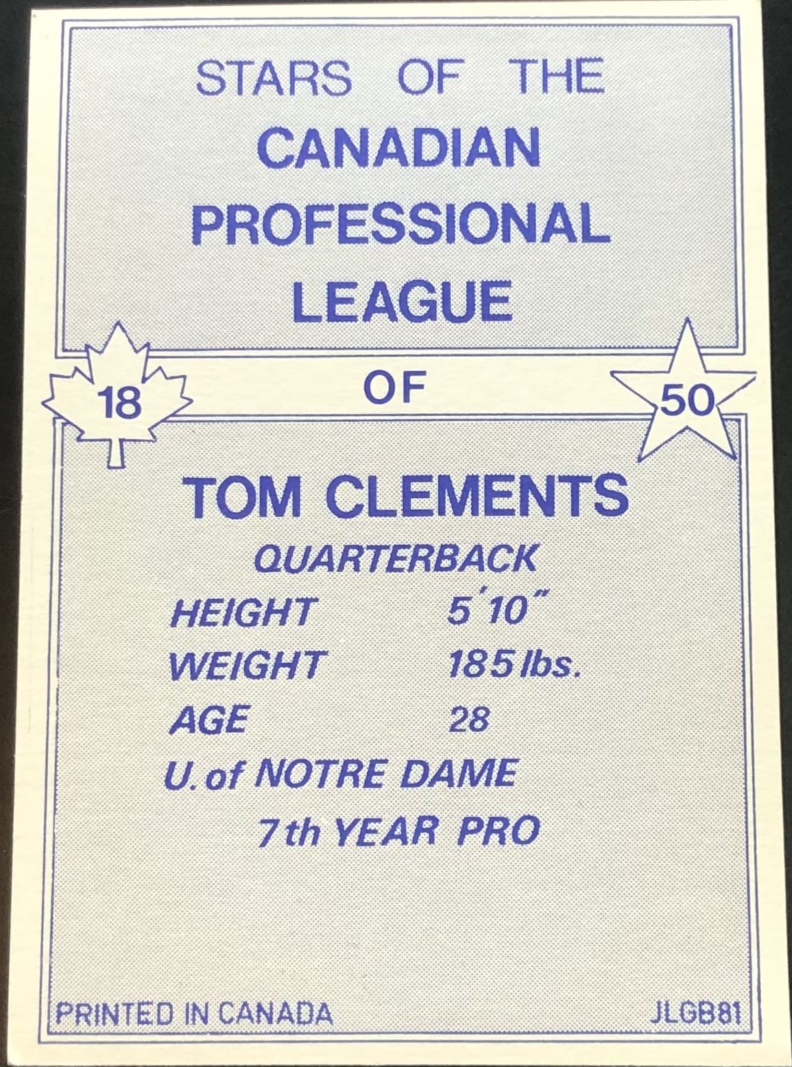 Card #18 CFL, football, vintage, hall of fame