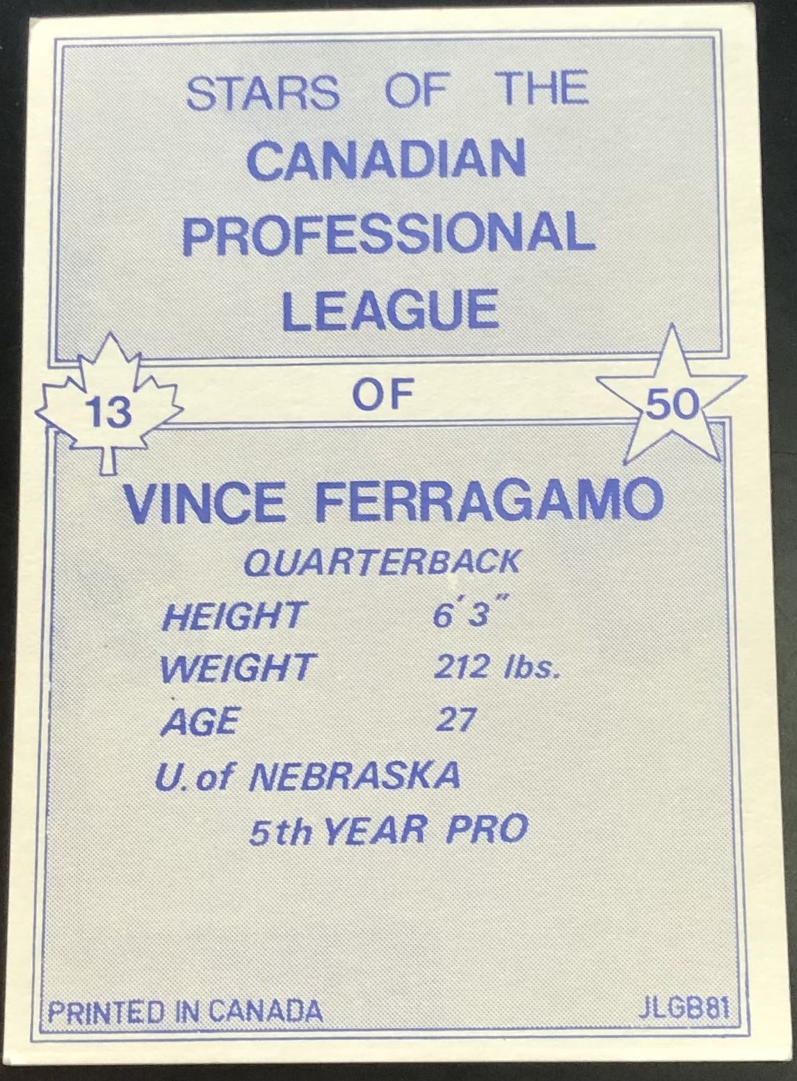 Card #13 CFL, football, vintage, hall of fame