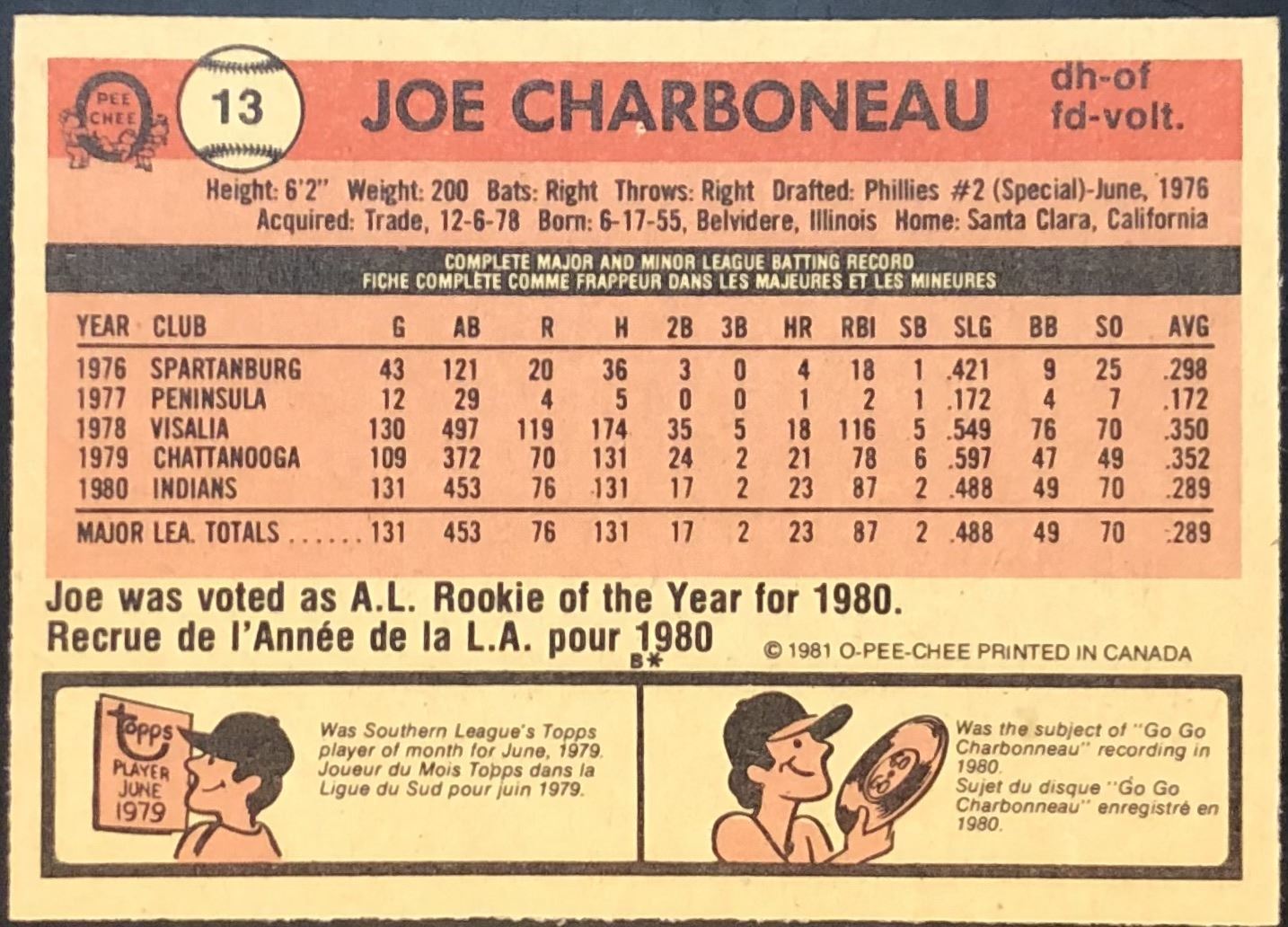 Card #13 MLB, baseball, vintage, OPC, rookie