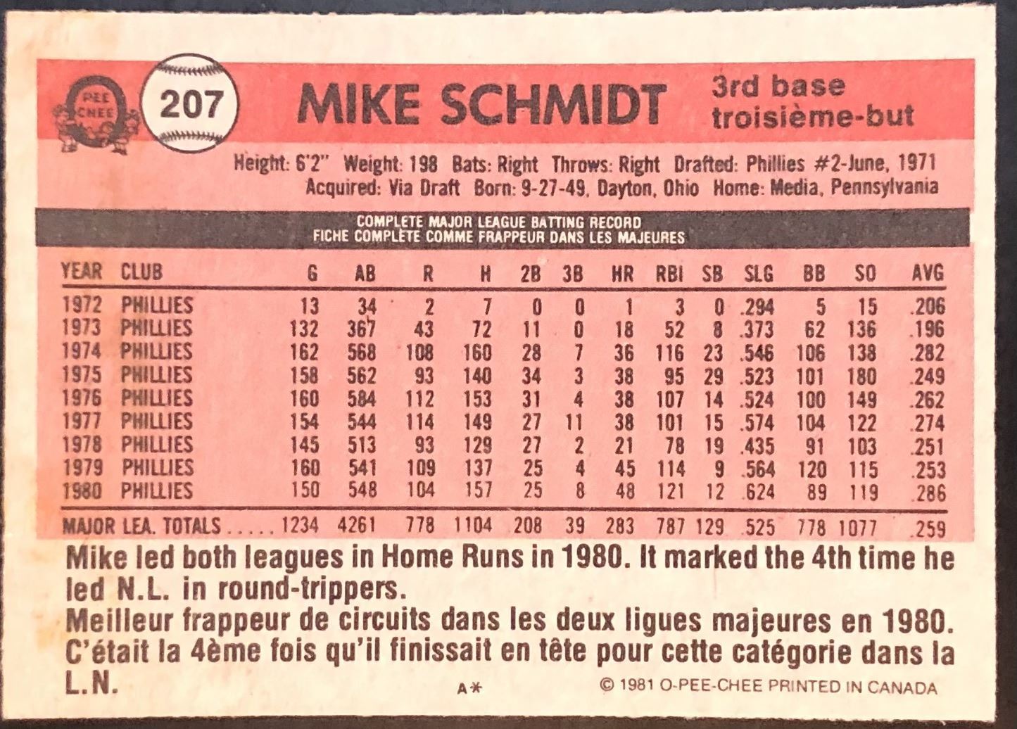 Card #207 vintage, MLB, baseball, hall of fame, OPC