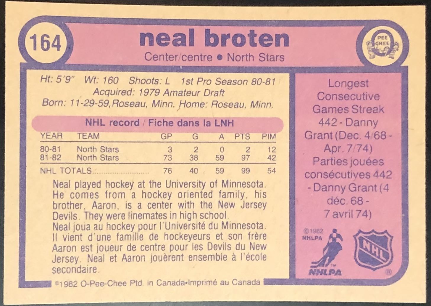Card #164 NHL, hockey, vintage, rookie, OPC