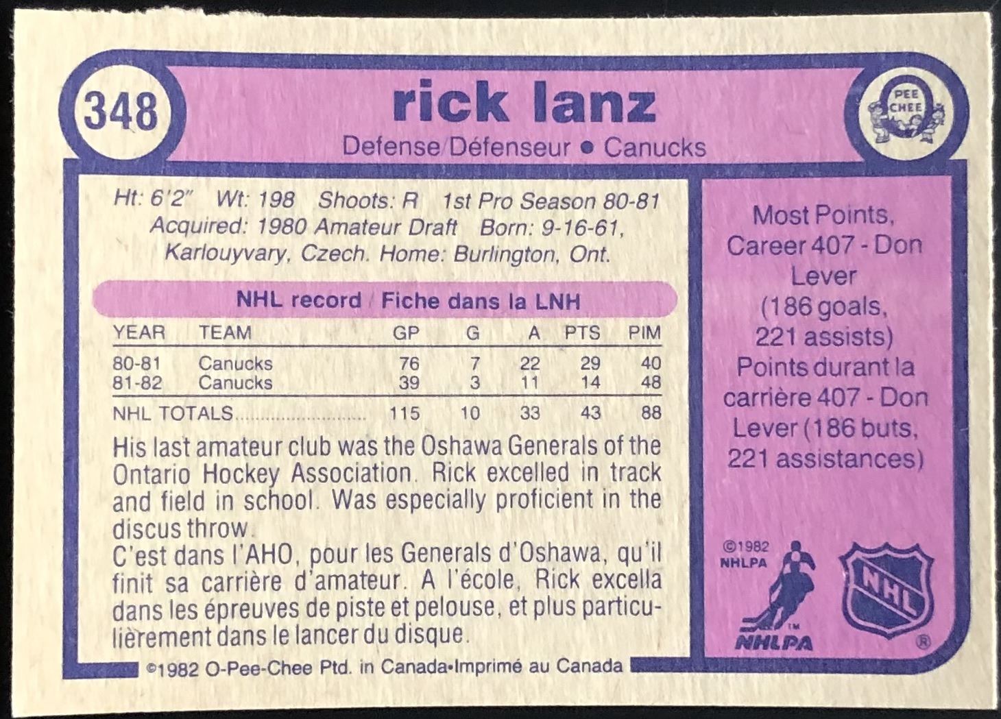 Card #348 NHL, hockey, vintage, OPC