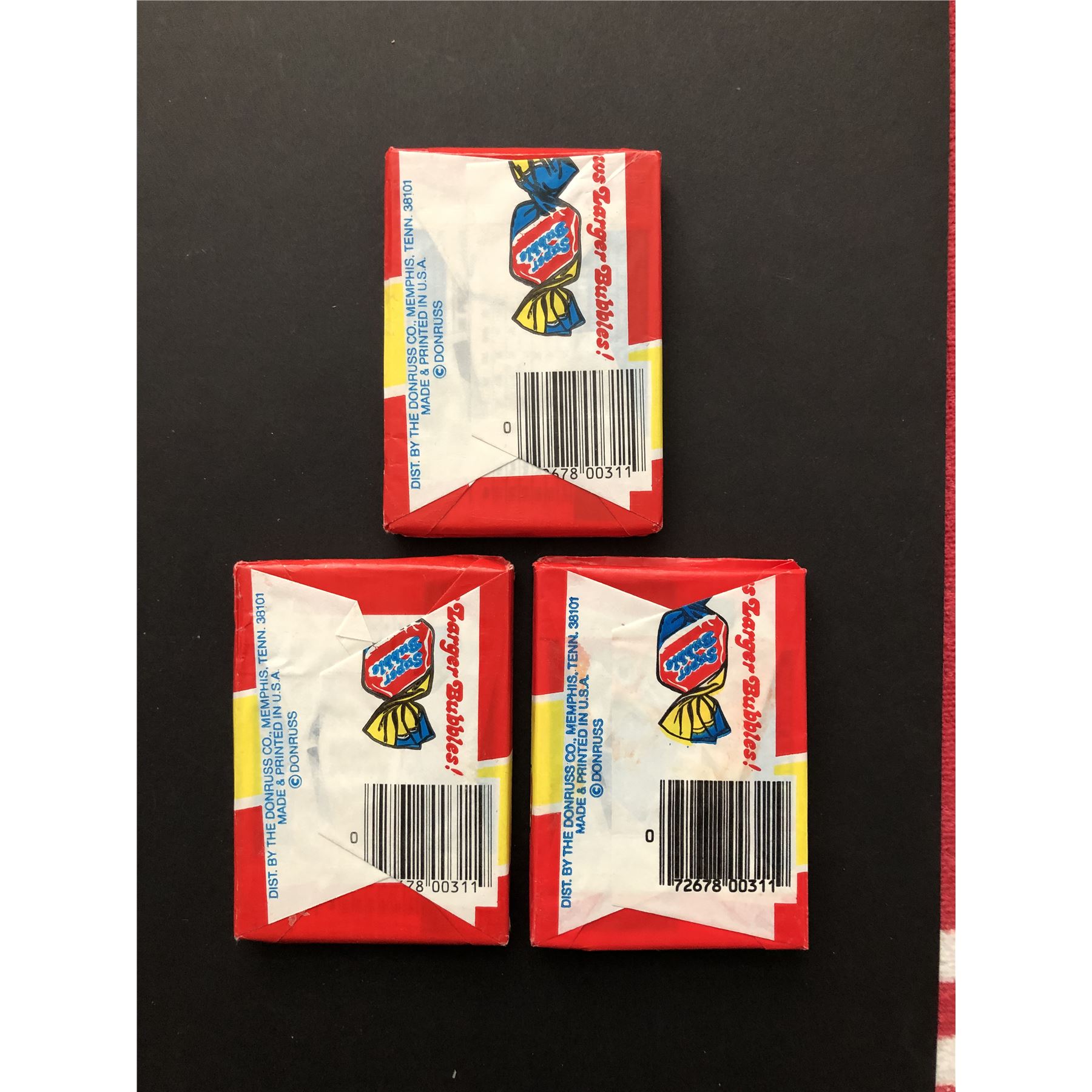 Unopened wax packs, 3 packs with 15 cards in each. Set includes rookie cards of HOF'ers Cal Ripken Jr., & Lee Smith, Kent Hrbek