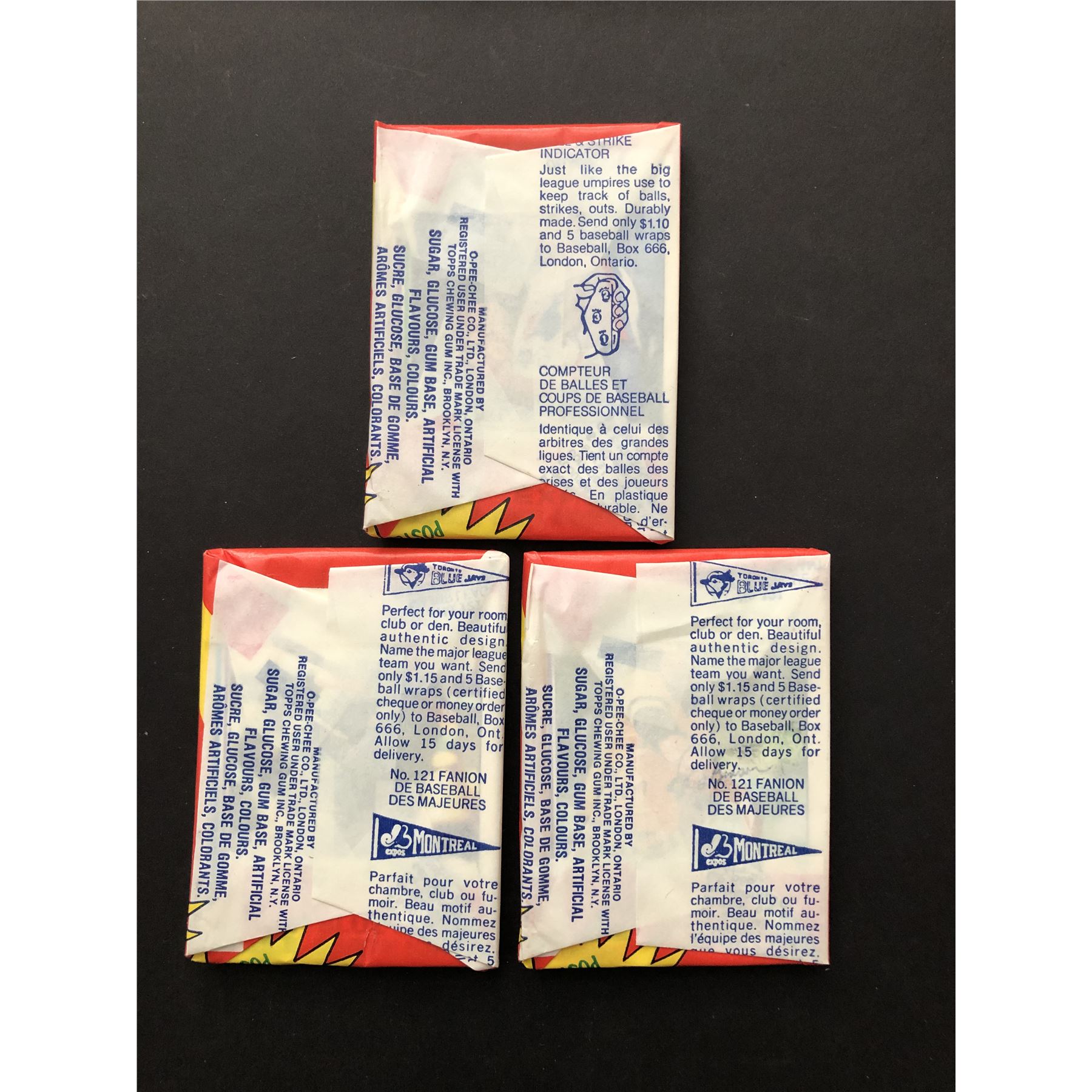 Unopened wax packs, 3 packs. Set includes rookie cards of Jesse Barfield, George Bell & Terry Francona