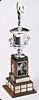 The Jean Lesage Cup is named after the beloved Premier of Quebec (1960-1966) Jean Lesage, sometimes portrayed as the father of the "Quiet Revolution." The trophy was presented annually by the Quebec Nordiques to the player who was the most outstanding representative of his profession. This trophy was presented to Nordique right wing Michel Goulet for the 1983-1984 season, Goulet having won it the previous year as well. This impressive trophy measures 34-1/2" and features a torch bearing figure above a silver cup mounted on a wood and marble base. On the front is a plaque with photograph of Lesage, on either side of which are mounted the heraldic fleur-de-lis. Below this is a plaque that is engraved in part "La Coupe Jean Lesage." On the lowest part of the base are six small plaques, four of which have been engraved with the prior awardees including Goulet, Peter Stasny and the first winner Robbie Ftorek. On the two adjacent sides are small blank plaques which would have ostensibly been engraved with future winners' names. Overall EXMT-NRMT condition with very light wear. This item will be expensive to ship.