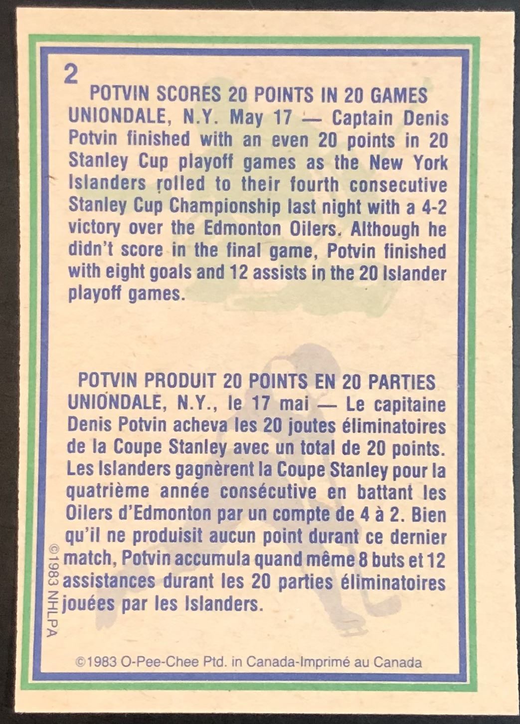 Card #2 OPC, vintage, NHL, hockey, hall of fame