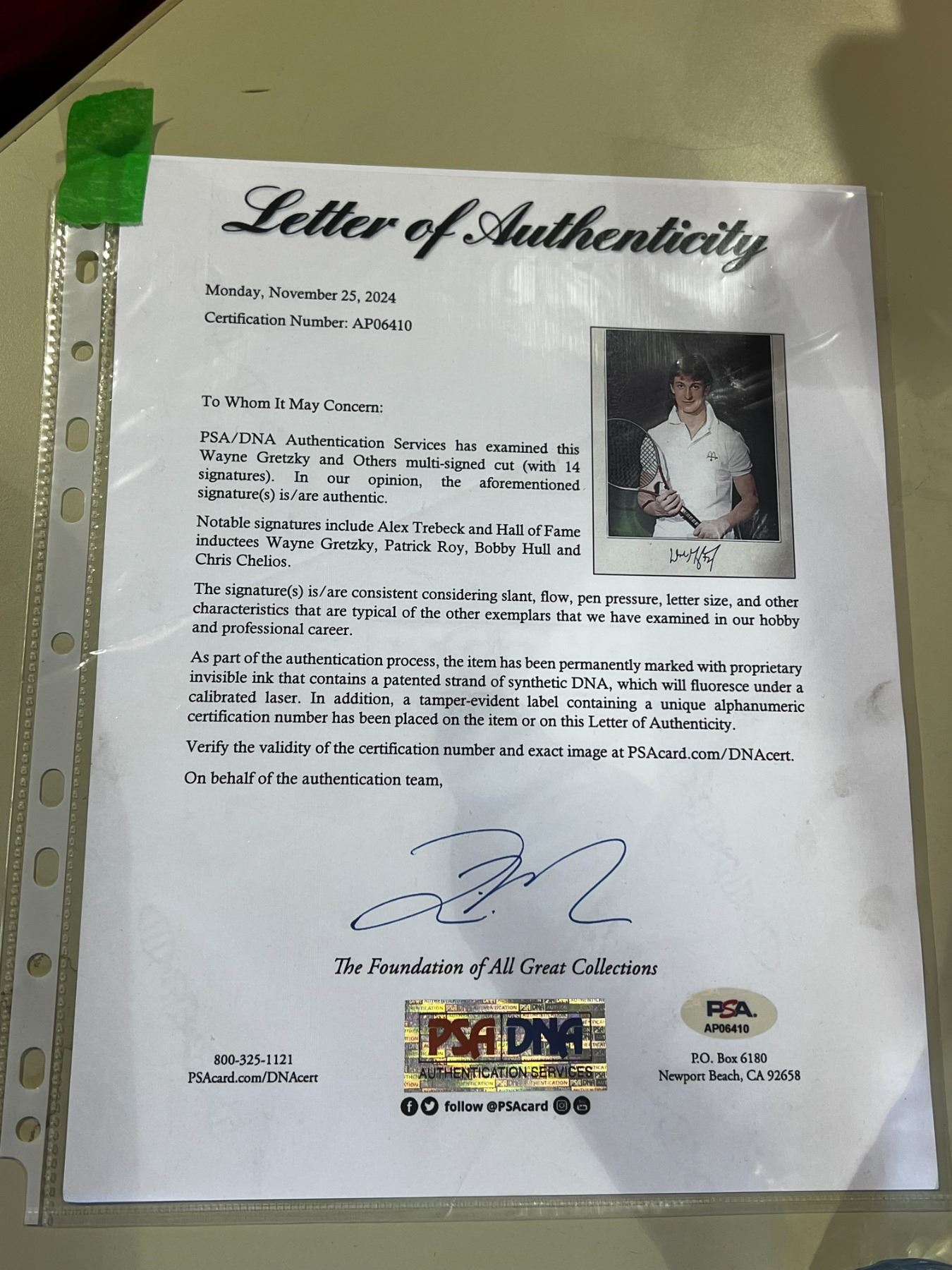 Size of Poster: 20" x 16", Weight: 6.5oz, Signatures on the Back of Poster Include: B. Hull, Alex Trebek, Chris Chelios, Lanny McDonald, Bruce McNall, Patrick Roy, Dave Taylor, & amp; Ron McLean and more, AUTO-B-4-4A-C-241114-02