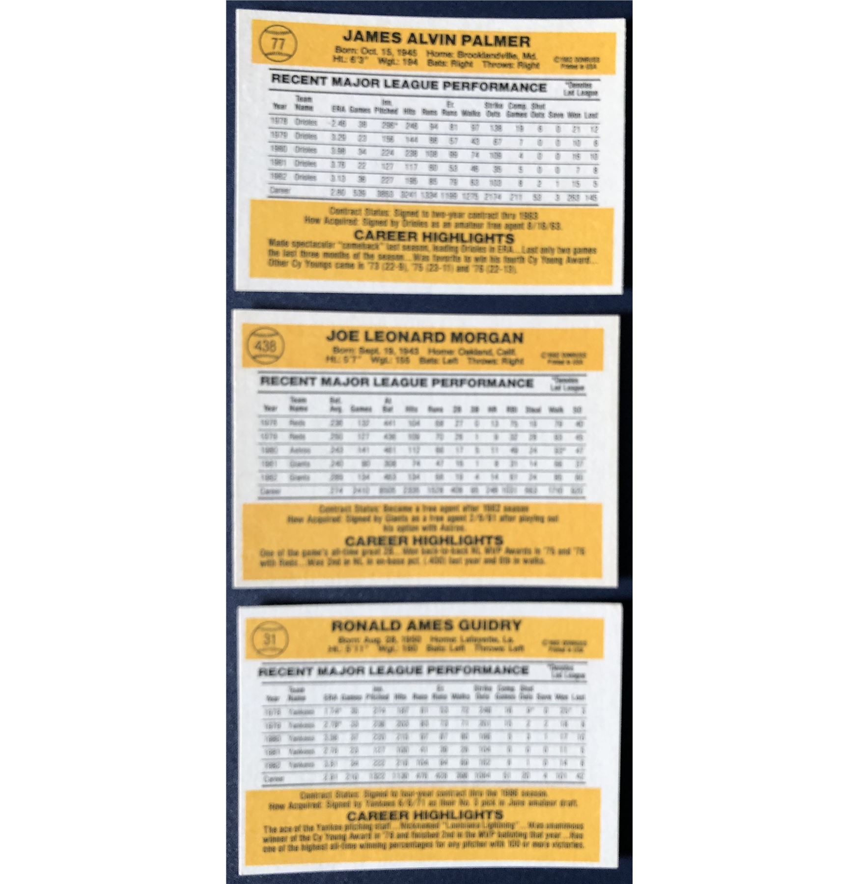 JIM PALMER, JOE MORGAN & RON GUIDRY MLB, baseball, hall of fame, vintage