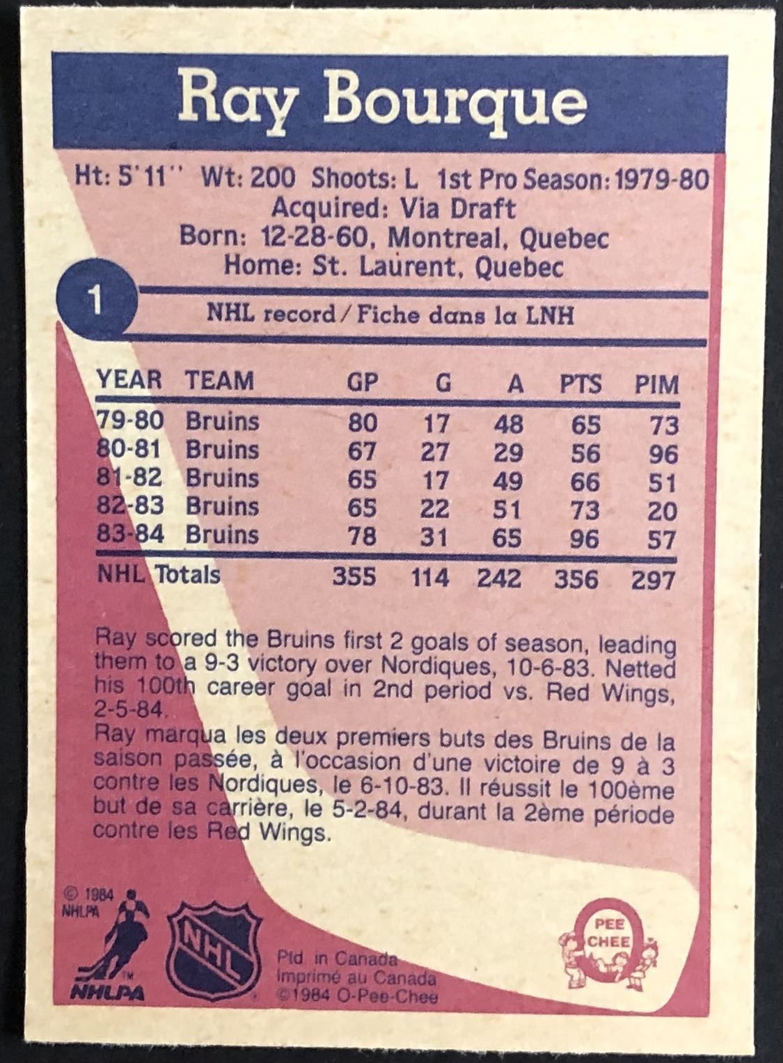 Card #1 NHL, hockey, vintage, hall of fame, OPC