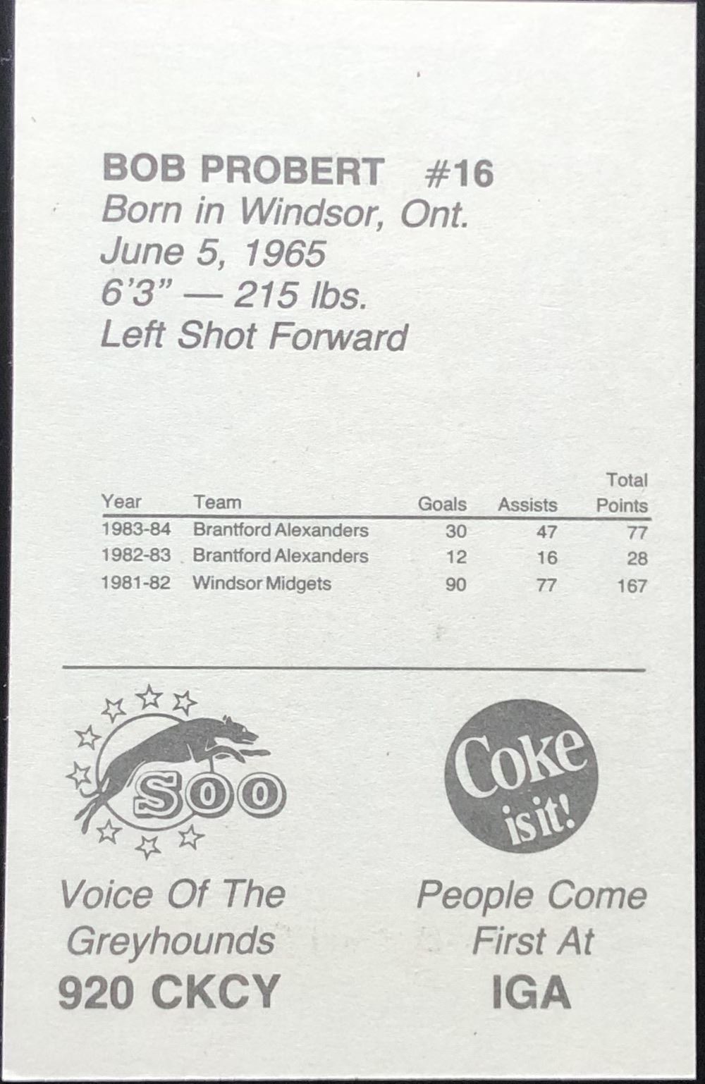 Card #16, issued by Sault St. Marie regional police CHL, hockey, vintage, regional, rookie